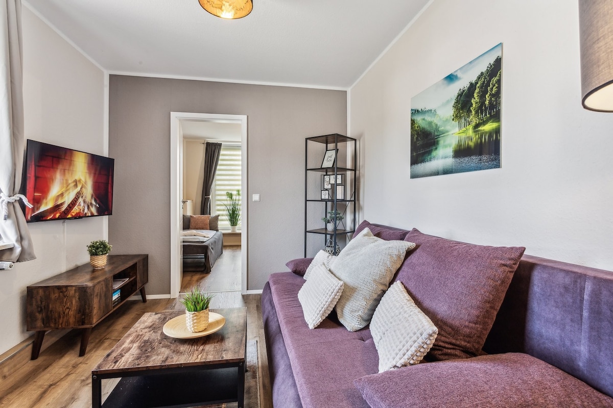 Herzlich willkommen! Das Apartment"Zeitreise" befindet sich am Rande der Altstadt und ist schnell zu erreichen, (3 Minuten von der Autobahn) und zwei Straßen weiter (in ca. 5 Minuten) sind Sie bereits auf dem historischen Marktplatz. Sie können direkt an der Straße kostenlos parken und wohnen komfortabel in einer 50m² Wohnung mit Balkon. Die Wohnung wurde 2018 komplett saniert, dabei wurde auf laststofffreie ökologische Ausführung geachtet. Gerne beantworte ich Ihre weiteren Fragen im Vorfeld.