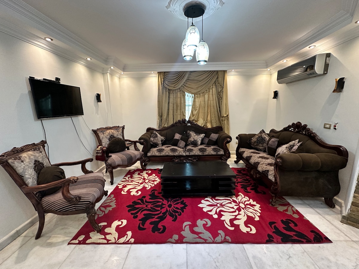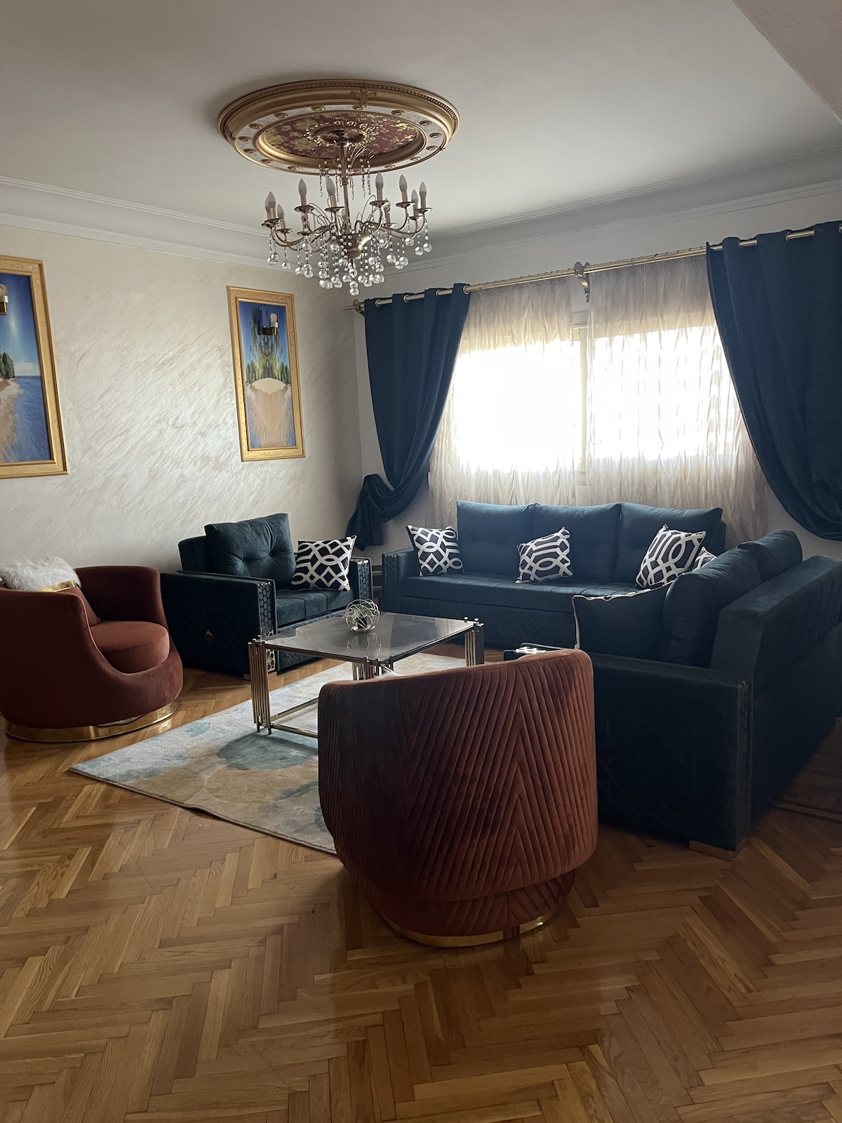 Beautifully designed luxury apartment . Private floor 2400 sq ft . A perfect getaway for family/individuals looking for neat well furnished stay in Ard El Golf- Heliopolis Cairo. A panoramic garden view along with sunshine specious area served with fully air conditioning (cold and heat). Inspired high standard amenities. Welcoming neighborhood. Metro station is 8 mints walking distance, Famous shopping malls and groceries are quite near. All over, nothing is better than a unique safe location.