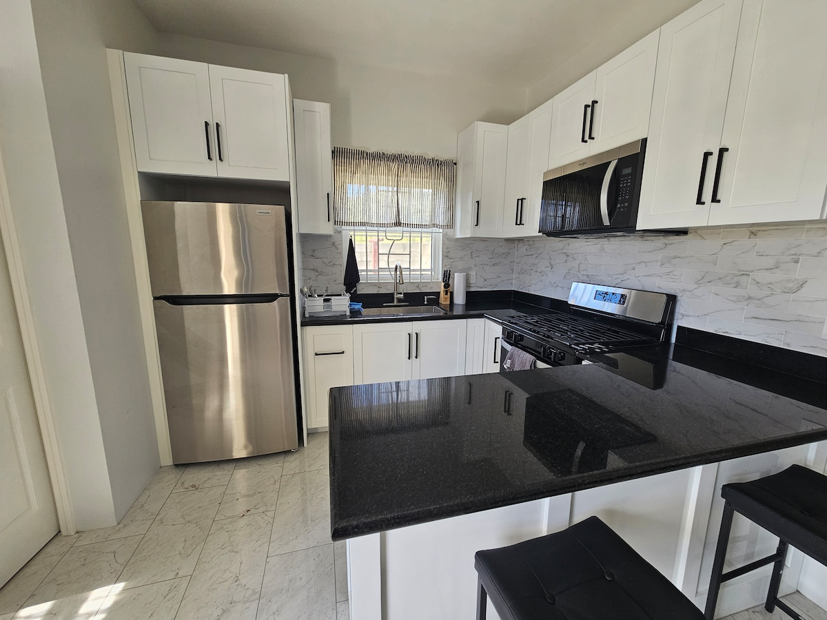 Forget your worries in this spacious and serene space. Sit on your Veranda with a Cocktail and watch the Lit Up Cruise ships pass you by. Enjoy the panoramic view of the mountains and sounds of the Ocean. Palmetto Bay is a 5 minute walk, where you can kick back and take a dip in the Ocean. This Apartment has a fully functional kitchen with cooking equipment incl. Stove, Ninja Air Fryer, Microwave, Fridge freezer, Coffee maker, Kettle, Toaster, Blender, Dishes, Cutlery and much more....