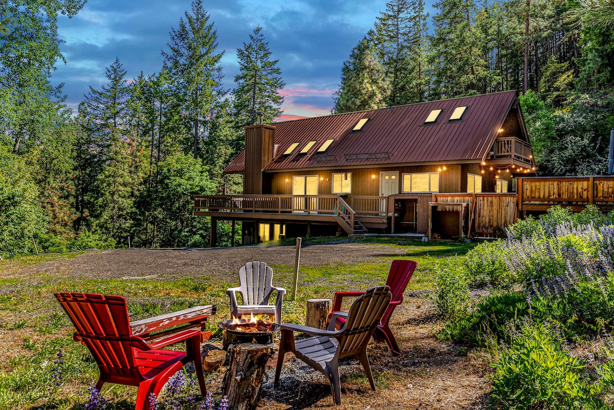 *Secluded, Breathtaking Views on 13 acres; 10 Min drive to Leavenworth, 40 Min to Stevens Pass. 8-Person Hot Tub, Private Back Deck, BBQ, Gas Fire Pit, 2 Pets; Indoor Fireplace *Near a train if people are sensitive to noise (it does not blow a horn) *Fully stocked kitchen, Bright & Open floor plan *Bunk bed space for kids; Board Games, Video Games, *Foosball Table