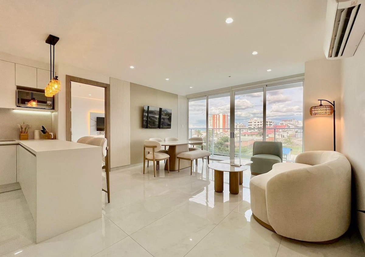 El departamento ideal frente al mar en Manta. Disfruta de un espacio moderno en Umiña–Barbasquillo con todo lo que necesitas: 🍳 Cocina equipada + utensilios 🧺 Amplios closets 🛁 2 baños completos 🛏 2 camas + sofá cama 🌅 Piscina con vista al océano 🐶 Pet friendly. Comparte con familia, pareja y amigos, y vive una experiencia inolvidable Ubicado a minutos de la playa, restaurantes y supermercados. Reserva ahora tu estadía perfecta.