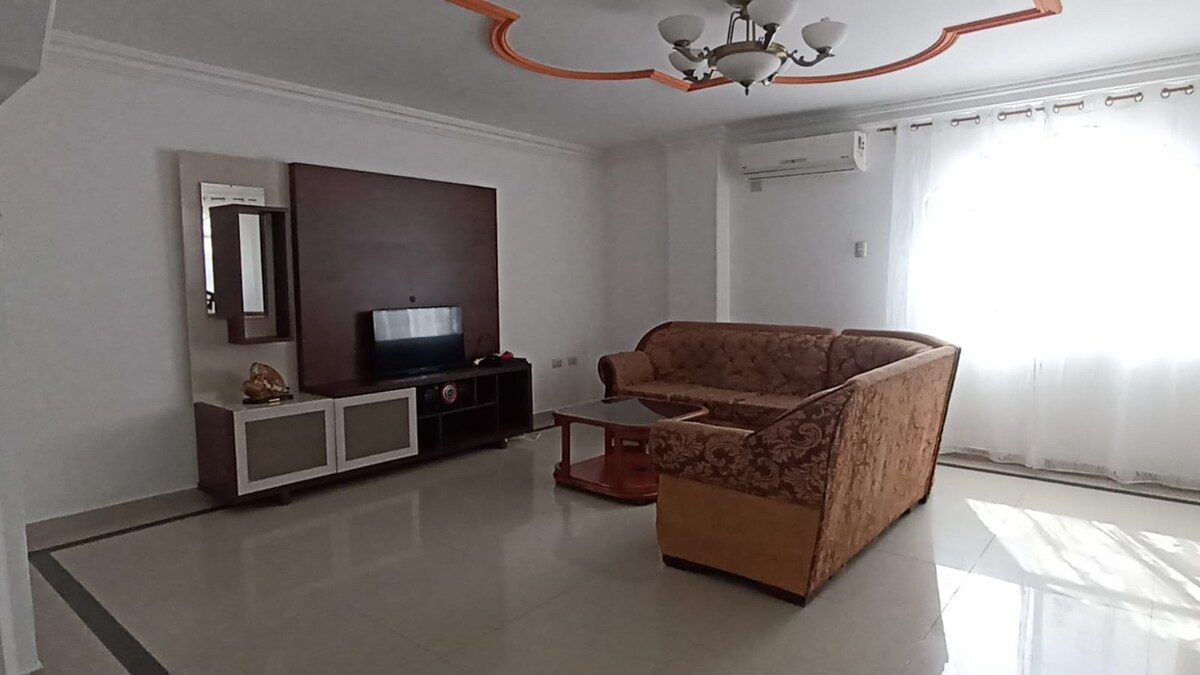 Relájate con toda la familia en este alojamiento donde la tranquilidad se respira. Casa familiar, ideal para quienes buscan un ambiente tranquilo y seguro. Para disfrutar de momentos en familia, rodeado de paz y comodidad, en un conjunto sereno donde la calma y el bienestar son protagonistas. A pocos minutos de las playas como: Murciélago, San Mateo, Santa Marianita, Liguiqui, y a 8minutos del centró comerciale Mall Del Pacífico, de Montecristi donde pueden adquirir sombreros artesanales