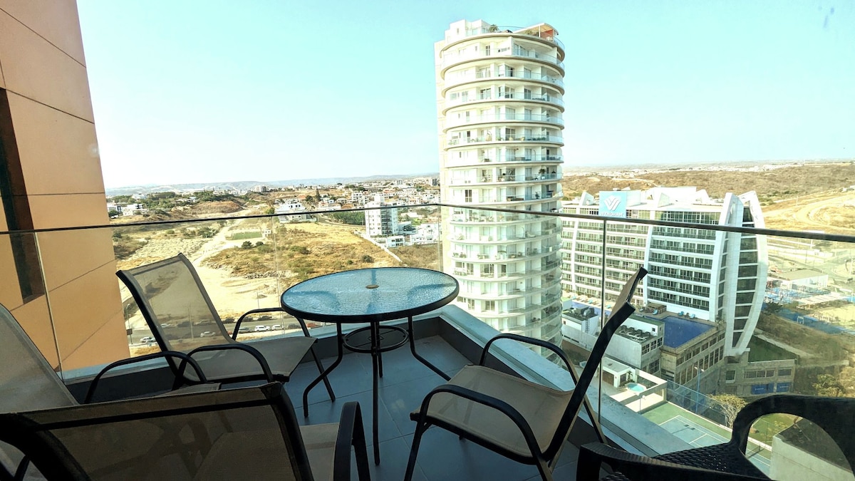 We have more rooms at # O999 116855 At the moment hotel facilities are not included. They require an extra fee. The 2-bedroom condo is located in the Poseidon Building on Manta Beach. Fully equipped apartment with a private balcony, view of the beach so you can enjoy the sunsets while enjoying the comfort of the place. The master bedroom is large with ensuite bathroom and has ocean views with its own entrance to the side balcony. Guest bedroom has two single beds and one additional bed.