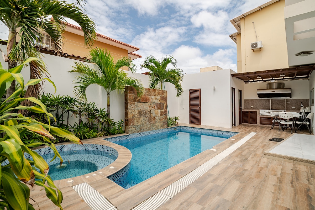 Casa de Lujo, Espaciosa, Elegante y con Jacuzzi Bienvenido a Casa Oasis, una casa moderna y sofisticada ubicada dentro de una prestigiosa urbanización, con jacuzzi interno y acceso a una piscina general. Diseñada para brindar comodidad, lujo, seguridad y diversión, esta propiedad es ideal para familias, grupos de amigos o viajeros que buscan una experiencia única.