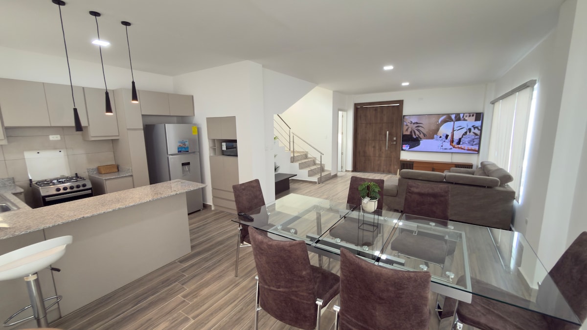 ☀️🏖️ La Casita del Sol in Manta 🌊🌴 Perfect for families of up to 8 guests. Enjoy 3 bedrooms with private bathrooms and air conditioning, a cozy living room, fully equipped kitchen, patio with BBQ, pool, private parking, and 24/7 security. 📍 Just minutes from Playa Murciélago, Barbasquillo, and Santa Marianita. Ideal for a beachfront vacation filled with comfort, fun, and unforgettable family moments.