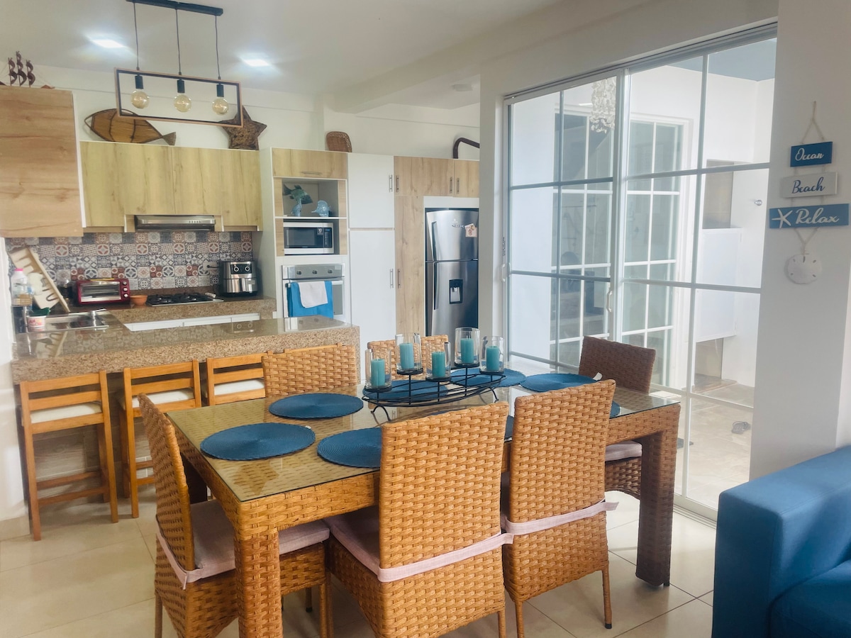 Relájate con toda la familia.! En este alojamiento donde la tranquilidad se respira. Tendrás acceso directo a Playa Privada y una hermosa Piscina compartida. Te ofrecemos 3 habitaciones todas con Aire acondicionado, 2 de ellas con Vista a la playa y 3 Tv con aplicaciones modernas. Wifi en toda los 2 pisos de la Casa. Tenemos una cocina equipada con Todo lo necesario y un Patio con Un Asador y comedor Exterior Además Estacionamiento para 2 autos Supermercado y Gimnasio cercanos. Recibes obsequio.