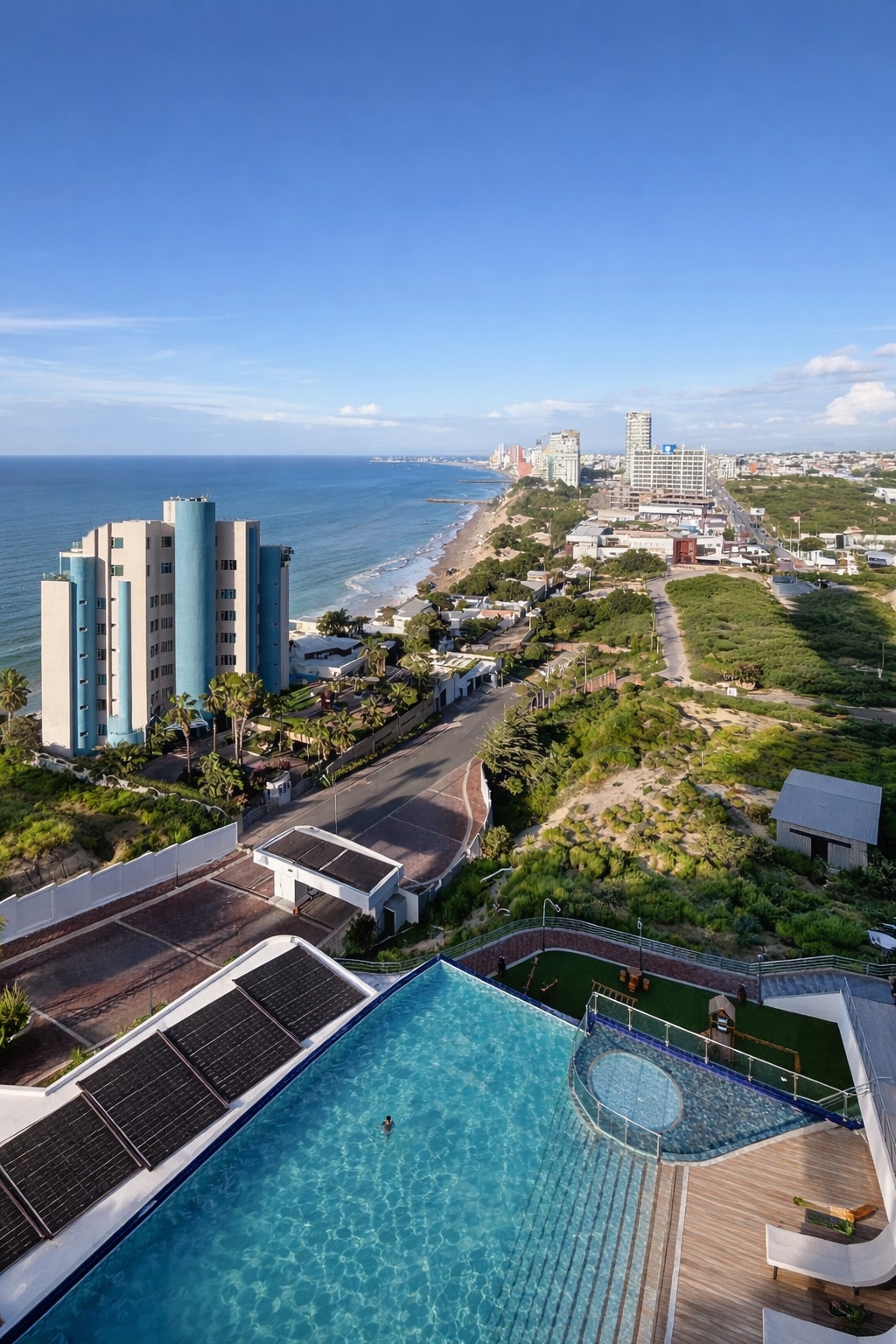 ¡Un hallazgo excepcional frente al mar! Hospédate en la mejor zona de Manta, con acceso directo a la playa Murciélago y al Mall del Pacífico. Vive una experiencia única con decoración playera y toques oceánicos, ideal para desconectarte y relajarte. Disfruta de piscina, jacuzzi, sauna y seguridad 24/7. Todo lo que necesitas para una estadía inolvidable está aquí. ¡Te encantará tanto que no querrás irte!