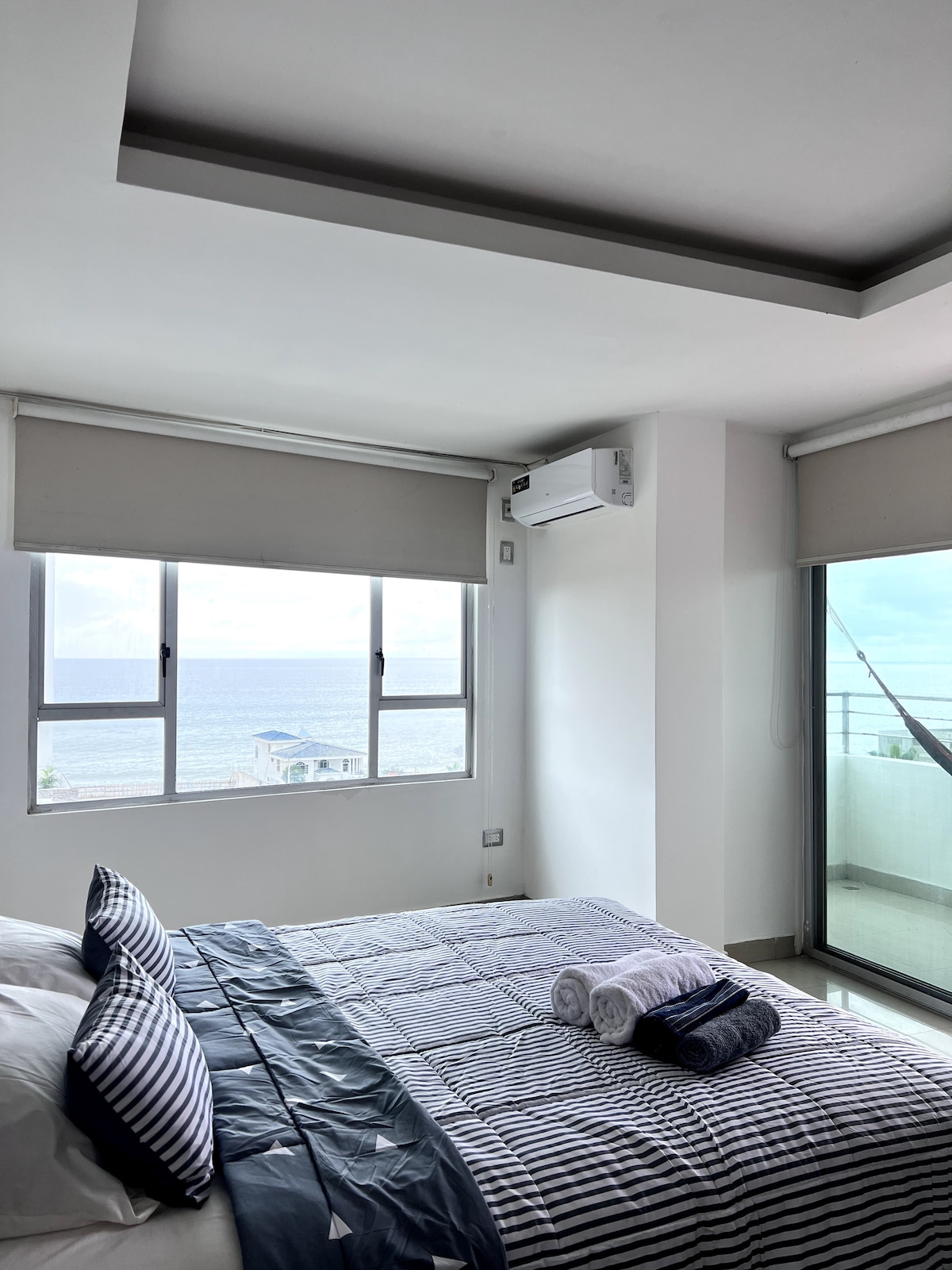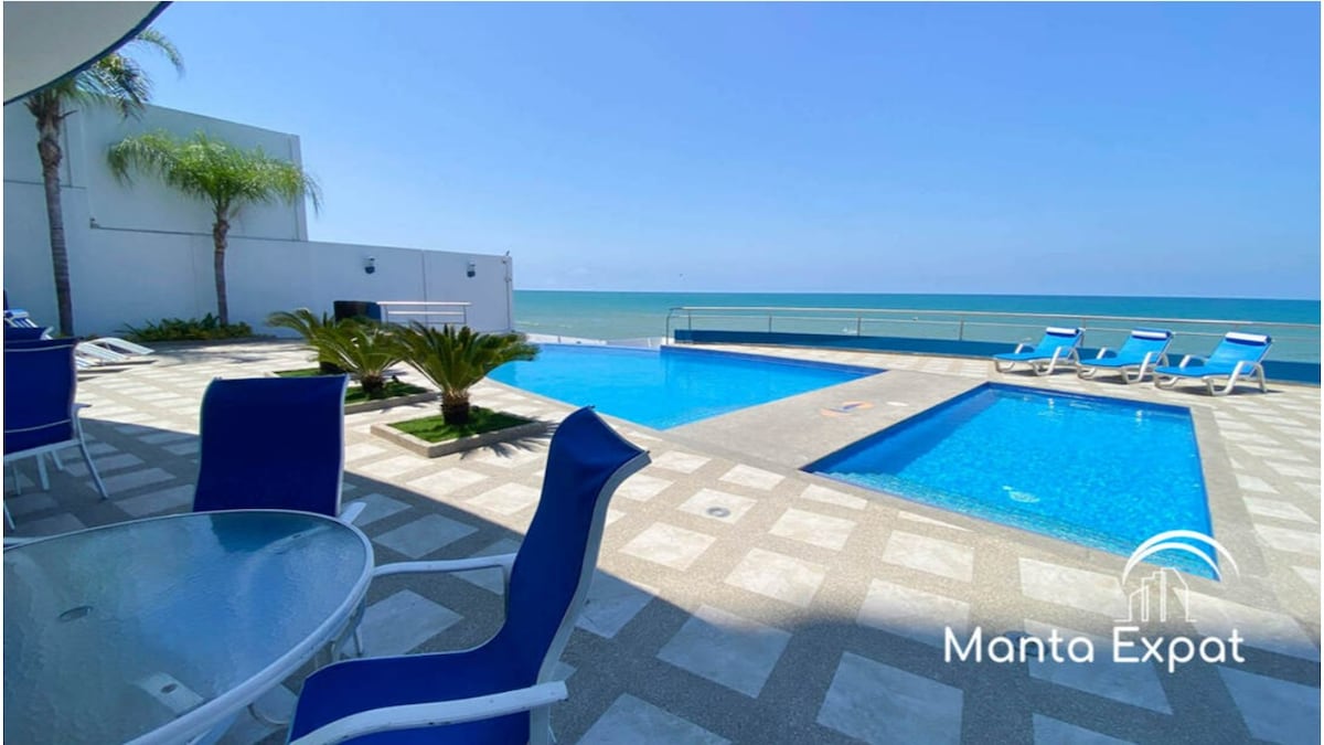 - Disfruta Manta desde este moderno y cómodo departamento 🌊. - Ubicado cerca del mar, es ideal para descanso o trabajo. Cuenta con 2 habitaciones, 2.5 baños, cocina equipada, WiFi rápido 📶 y aire acondicionado ❄️. - Capacidad para 5 huéspedes. - Acceso a piscina 🏊 y áreas comunes. Zona segura, cerca de restaurantes y comercios. - Perfecto para una estadía tranquila, confortable y con todo lo necesario para sentirte como en casa.