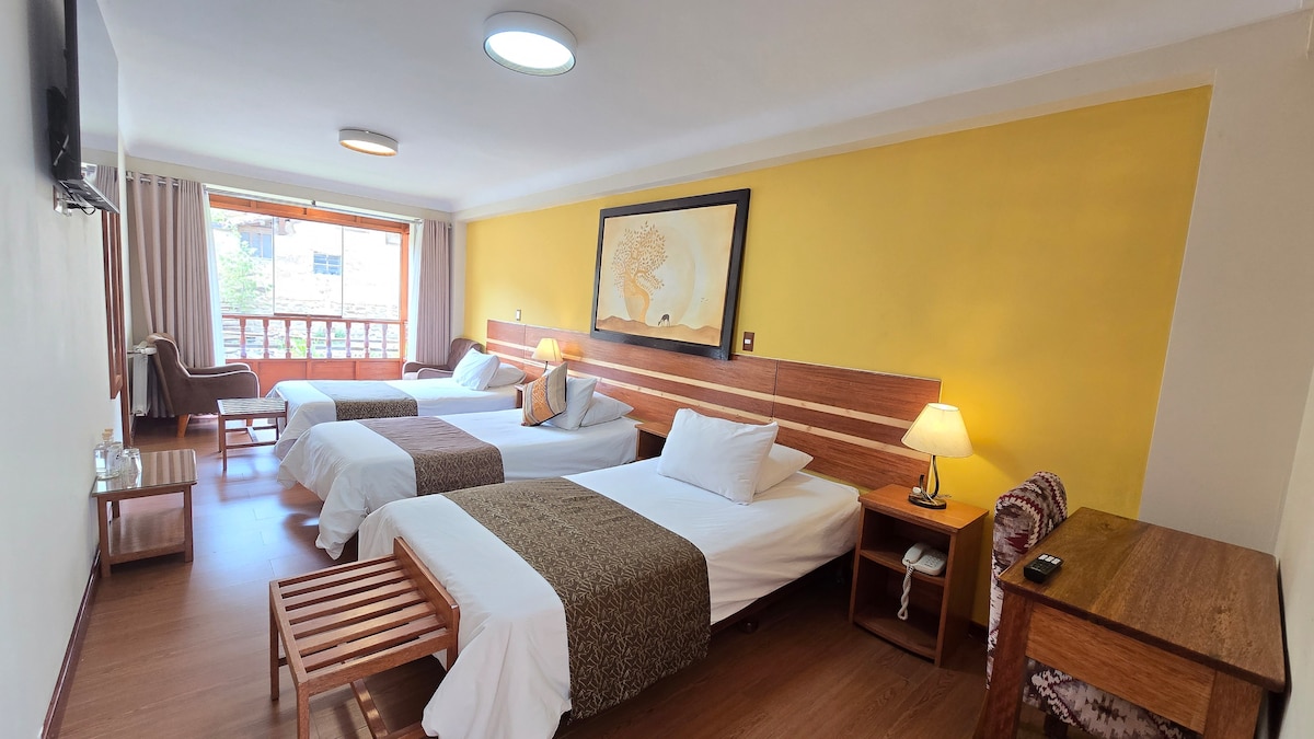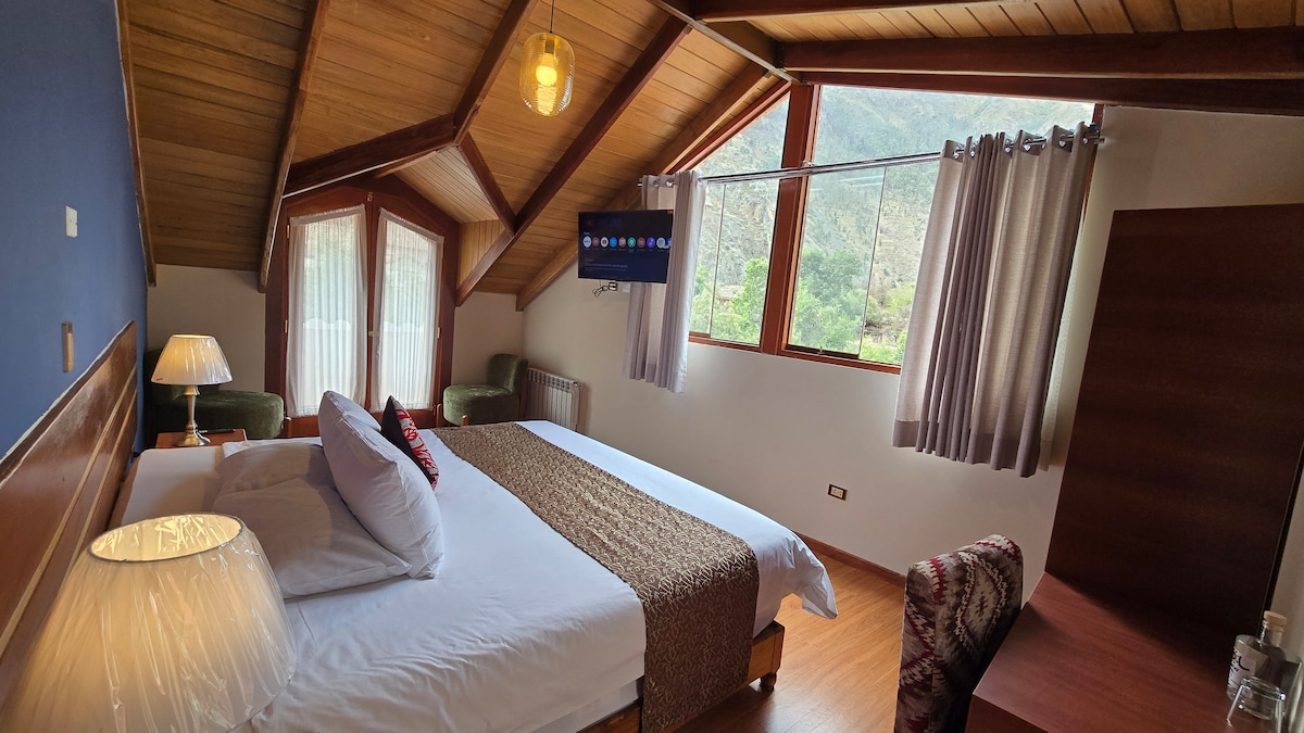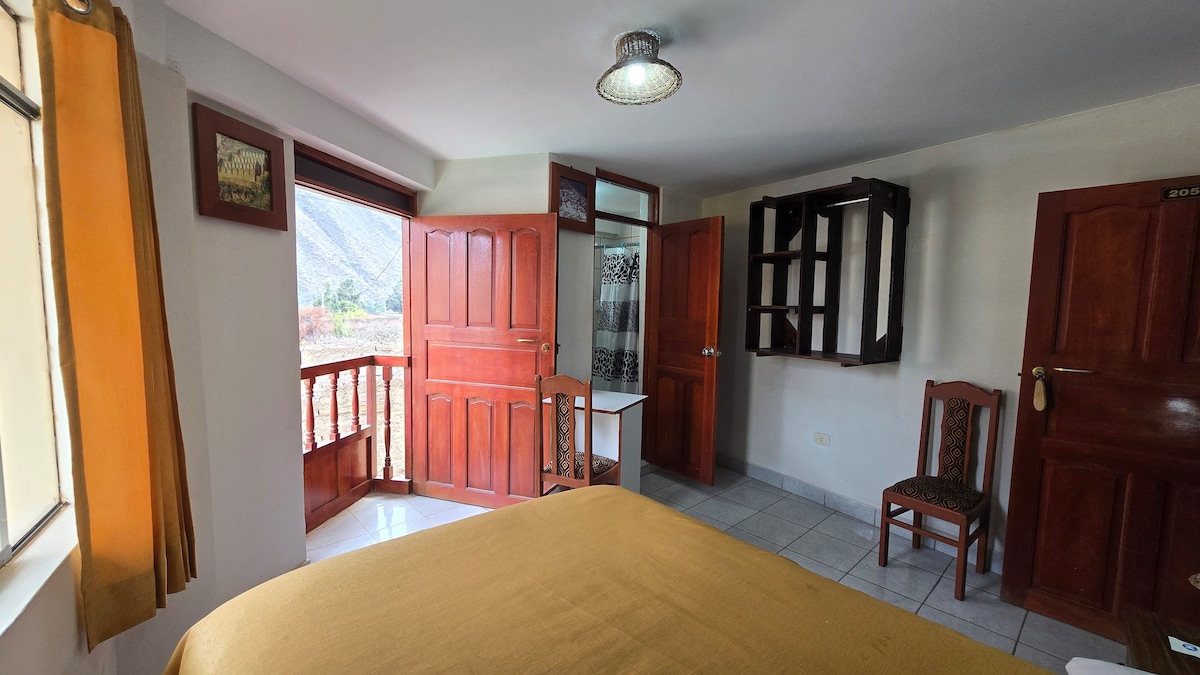 Vive la magia del Valle Sagrado desde esta acogedora habitación con diseño rústico y detalles andinos. Estamos ubicados a solo 5 minutos caminando del complejo arqueológico de Ollantaytambo y a 10 de la estación de tren a Machu Picchu. Disfruta de: - Cama queen size y ambiente silencioso - Baño privado con agua caliente 24/7 - Wifi rápido y escritorio - Estacionamiento gratuito Ideal para parejas, viajeros solos o amantes de la historia que buscan tranquilidad y conexión con la cultura local.