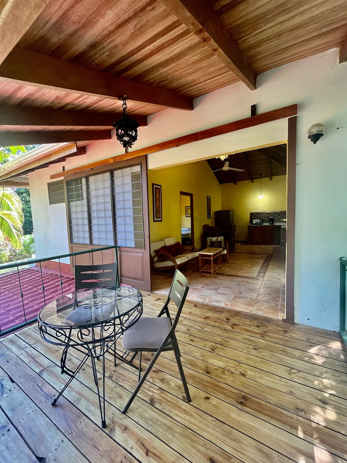 Stunning fully furnished condo in prime Manuel Antonio location! Two queen beds, A/C, and ceiling fans ensure a comfortable stay. Enjoy granite-teak cabinets, modern appliances, and cable TV. High-speed WiFi keeps you connected. Relax on the open-air porch with a table for 6, hammock, and rocking chairs. Dive into the refreshing pool. Close to beaches, restaurants, and stores. Monkeys often visit! Perfect for an unforgettable stay!