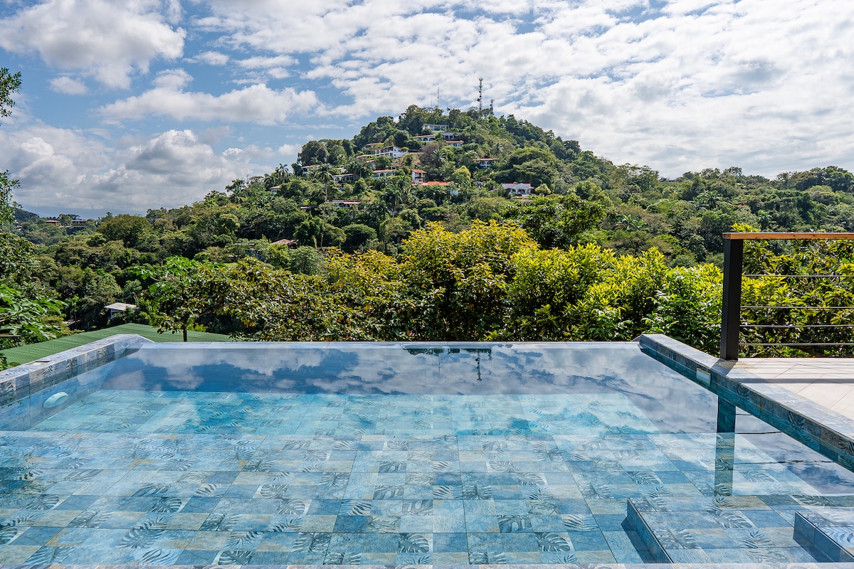 Nestled in the trees of your private preserve, this luxury treehouse, with a private pool & cabana, offers a stunning home base to explore nearby Manuel Antonio National Park and Beach! Just 5 minutes to Park, beach, shops & restaurants, this brand-new home has it all. Chef's kitchen with brand new appliances, fast WiFi, luxury mattresses, 2 BRs w/ private baths, Bunk Bed, AC, and tire swings. With a private hiking trail, replete with sloths, monkeys, exotic birds, and armadillos!