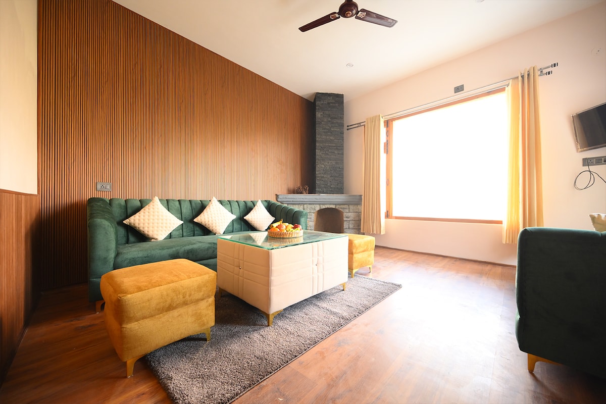 Welcome to a cozy glass-front wooden cabin tucked away in peaceful Sainj Valley, near the Great Himalayan National Park (GHNP). Surrounded by apple and plum orchards, this serene retreat is perfect for couples, solo travelers, and nature lovers. Wake up to sunrises over snow-capped mountains, chirping bird songs, and spend your evenings by the bonfire under starry skies. Enjoy fresh, local Himachali food and pure mountain air. Note: Guests above 50 years not allowed.
