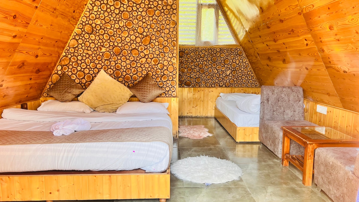 Escape to the serene Sainj Valley and unwind in our charming A Frame Duplex Cottage, nestled amidst the majestic Sainj Valley. - A spacious master bedroom with an attached washroom with modern amenities. - A secondary bedroom located upstairs, perfect for families or friends. Our cottage is situated in a peaceful location, with: - The majestic Himalayan range & explore nearby village local culture.