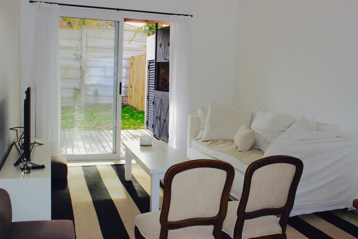 Relájate en este tranquilo alojamiento en un pueblo alejado de la ciudad, llamado Torres. Casa de campo, de muñecas para algunos. Mucho verde, árboles de mora, higos y quinotos. Especialmente para desconectar con los ruidos de los pajaritos. En el parque: parrilla, fogonero y pileta. Hay un restaurante en el pueblo que paró a comer, Carlos Gardel, cuando se inauguró. Tenemos un 10% de descuento para vos. La estación de tren es muy pintoresca y se han filmado muchas películas Argentinas.