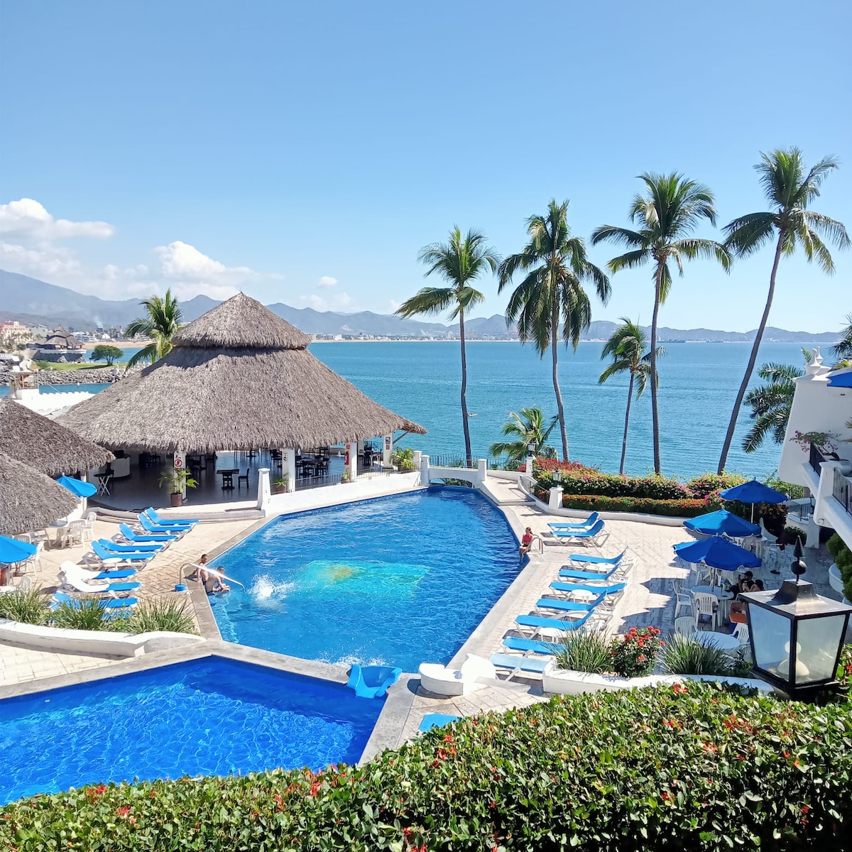Incredible ocean front condo just steps to the beaches in the magical Las Hadas area. It comes with a fully equipped kitchen, extra bonus room, private washer/dryer, strong Wi-Fi, smart TV, drinking water, Alexa, and a large private terrace to enjoy the amazing views and sounds of the waves! There are 2 beaches (Playasol and Las Hadas), an onsite restaurant (many other restaurants within walking distance), and a heated pool. Perfect for a family or a romantic getaway. Weekly discounts available!
