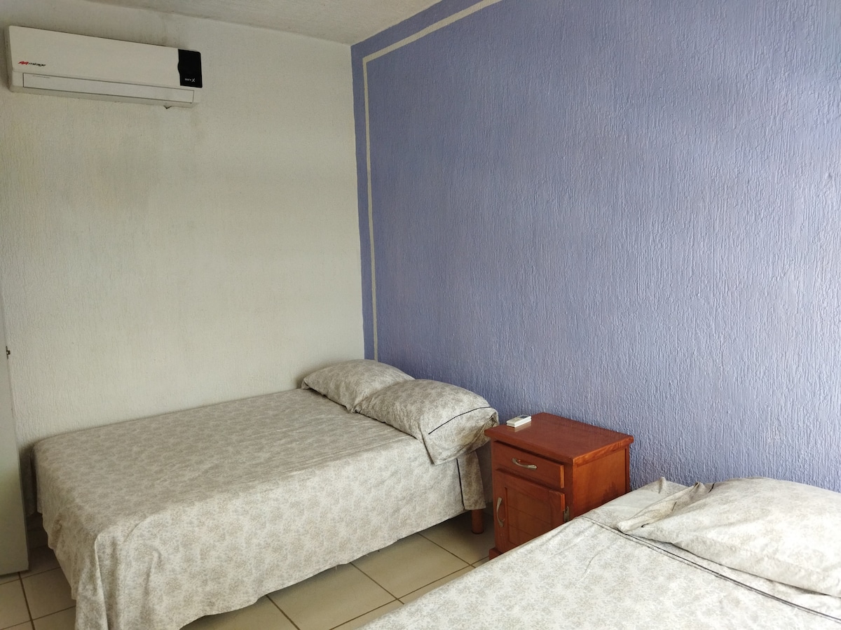 Comodo departamento con las facilidades para hacer de tus vacaciones una experiencia agradable y familiar. Tenemos restaurant, albercas y acceso al mar, seguridad las 24hrs, estacionamiento. La habitacion tiene un cuarto con una cama king size y un baño. En otro cuarto tiene tres camas individuales junto con la cocineta equipada, comedor, microondas refrigerador, aire/a, ventilador de techo, en el pasillo otro baño, internet y un hermoso balcon con vista a la bahia de Manzanillo