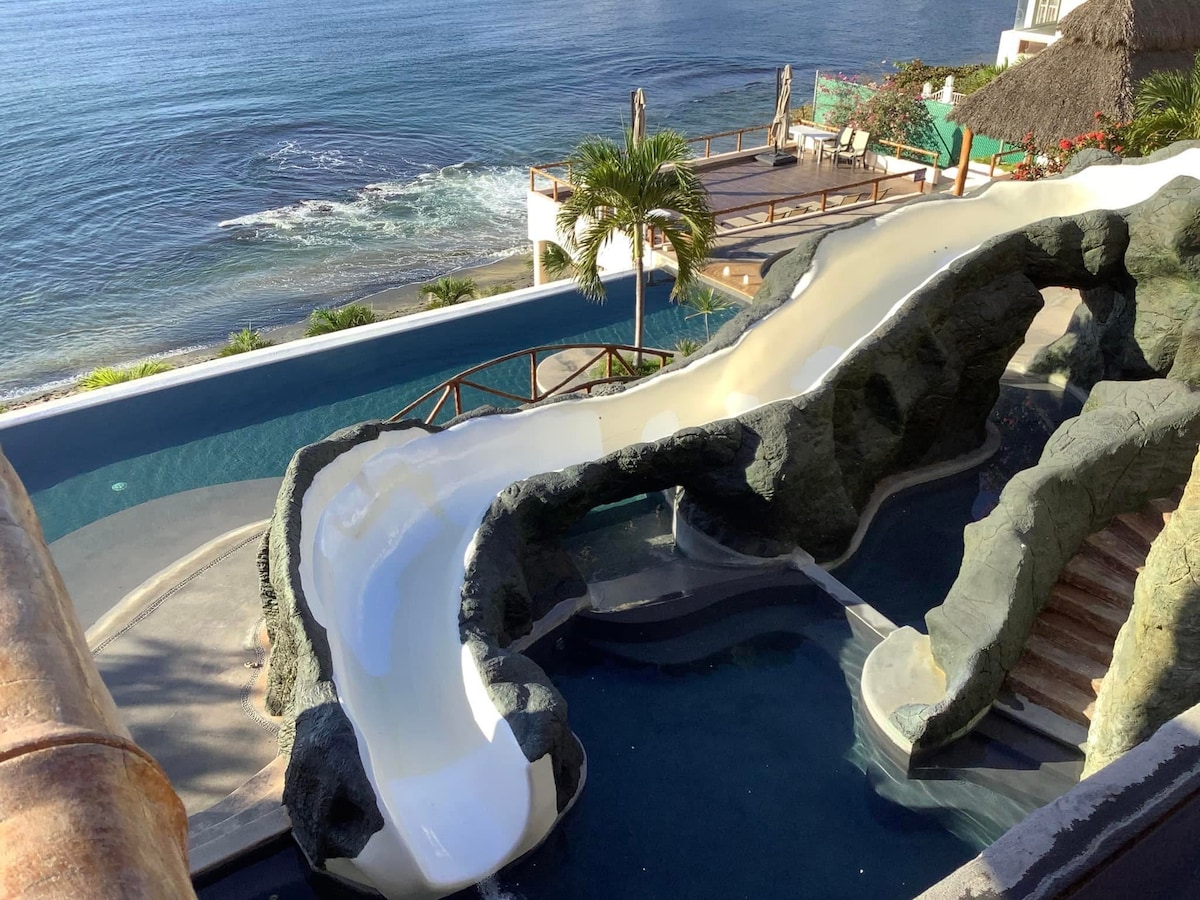 Incredible ocean front condo just steps to the beaches in the magical Las Hadas area. It comes with a fully equipped kitchen, extra bonus room, private washer/dryer, strong Wi-Fi, smart TV, drinking water, Alexa, and a large private terrace to enjoy the amazing views and sounds of the waves! There are 2 beaches (Playasol and Las Hadas), an onsite restaurant (many other restaurants within walking distance), and a heated pool. Perfect for a family or a romantic getaway. Weekly discounts available!