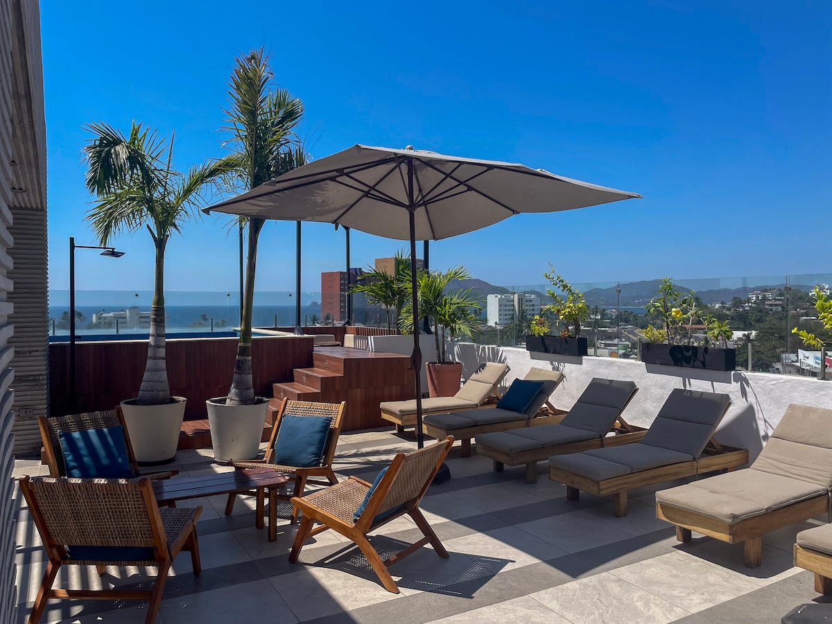 Disfruta Manzanillo desde este moderno departamento en Olas Altas -2 recámaras -2 baños completos -Cocina equipada -Sala con smart TV y sofá cama -Jacuzzi privado El departamento se ubica en el piso 4 contamos con elevador Disfruta del rooftop con vista panorámica y alberca infinita. A solo 5 min de la playa, restaurantes y tiendas. Contamos con estacionamiento. Ideal para vacaciones en pareja, familia o amigos. ¡Vive una experiencia única con vistas increíbles!