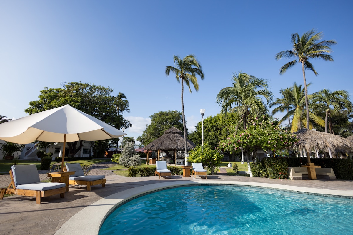 Listing is for a 2 bedroom suite, located on first floor . Maravillas del campo is near a secluded beach area where locals come. It’s a family friendly place to unwind and savor the authentic Mexican seafood dishes. Experience the unique culture of the manzanillo coastal life. Walking distance to the Club De Santiago golf course, and in the vicinity of La Boquita cove. Kid friendly beaches with calm waves and an array of fun water activities like jet skies and boat rides around the cove.