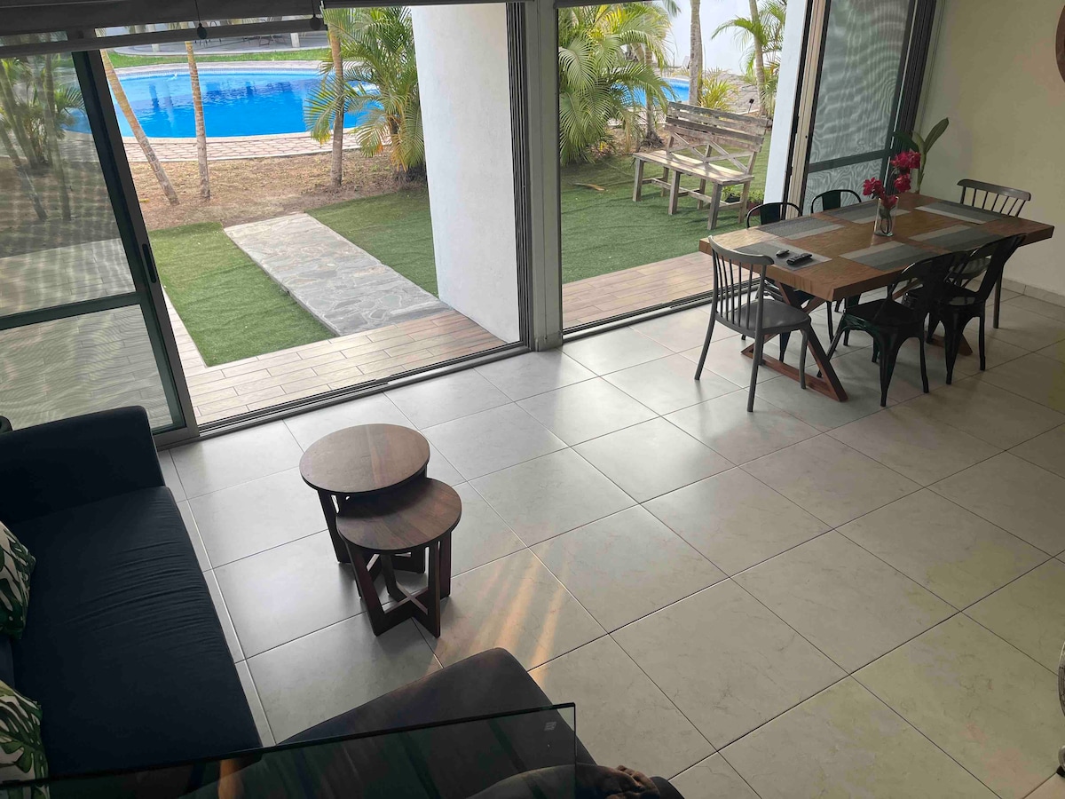 Kick back and relax in this calm, stylish space. Golden zone of Manizanillo, Shared Pool, Two story home with air-conditioning in every room, three TVs throughout the apartment, well equipped kitchen and laundry area with washer and dryer, wifi service, soap, towels, shampoo, kitchen utensils, paper, everything for you to enjoy. Beaches are within 10 min drive, shopping center within 5 min drive, its very centric.
