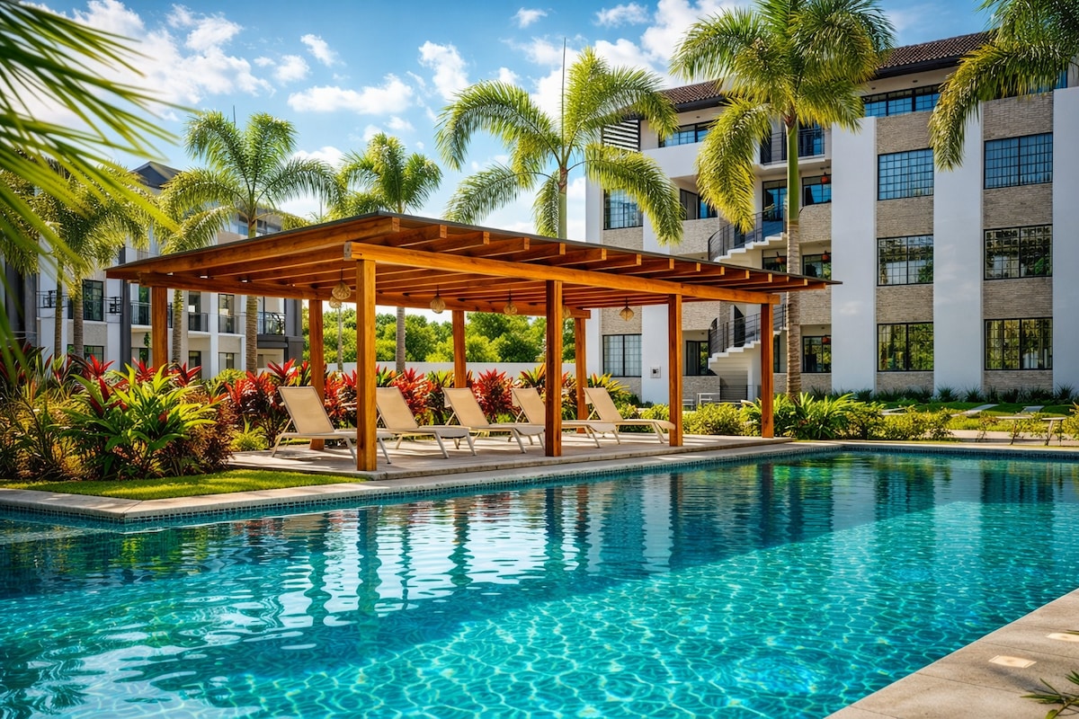 优质公寓,专属区域 + 家庭泳池,提供 Wi-Fi 和空调