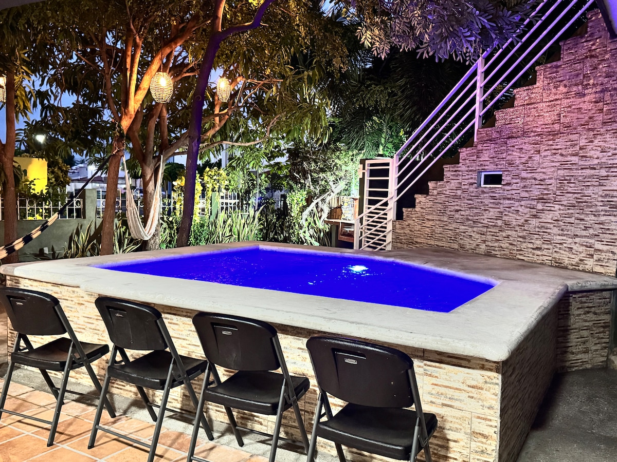 Escápate al descanso que mereces! Disfruta de unas vacaciones en nuestro acogedor alojamiento con alberca privada climatizada, ideal para relajarte y pasar tiempo con familia o amigos. Suite ubicada en un complejo turístico en la zona hotelera de Manzanillo cerca de bares, restaurantes y centros comerciales. La playa la encontraras a solo 2 minutos caminando ya que contamos con un club de playa con alberca justo enfrente cruzando la calle. Disfrutarás del mejor atardecer de manzanillo.