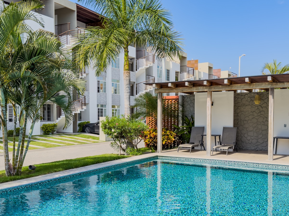 Incredible ocean front condo just steps to the beaches in the magical Las Hadas area. It comes with a fully equipped kitchen, extra bonus room, private washer/dryer, strong Wi-Fi, smart TV, drinking water, Alexa, and a large private terrace to enjoy the amazing views and sounds of the waves! There are 2 beaches (Playasol and Las Hadas), an onsite restaurant (many other restaurants within walking distance), and a heated pool. Perfect for a family or a romantic getaway. Weekly discounts available!