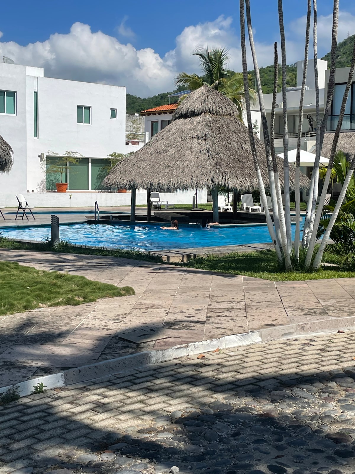 Cozy 1 bedroom +den apartment with breathtaking view of the Pacific Ocean and Playa La Audencia. 5 min walk to the beach. You can enjoy private pool. WIFI and 2 smart TVs available. 2 twin beds, 1 of them has a trundle bed available. 1 double bed. Walking shower, 2 AC units. Walking distance to Tesoro Hotel and 2 small restaurants and Kiosko. 5 minutes drive to Las Hadas Hotel, Walmart and Soriana. Taxi and bus #8 available in the front gate.