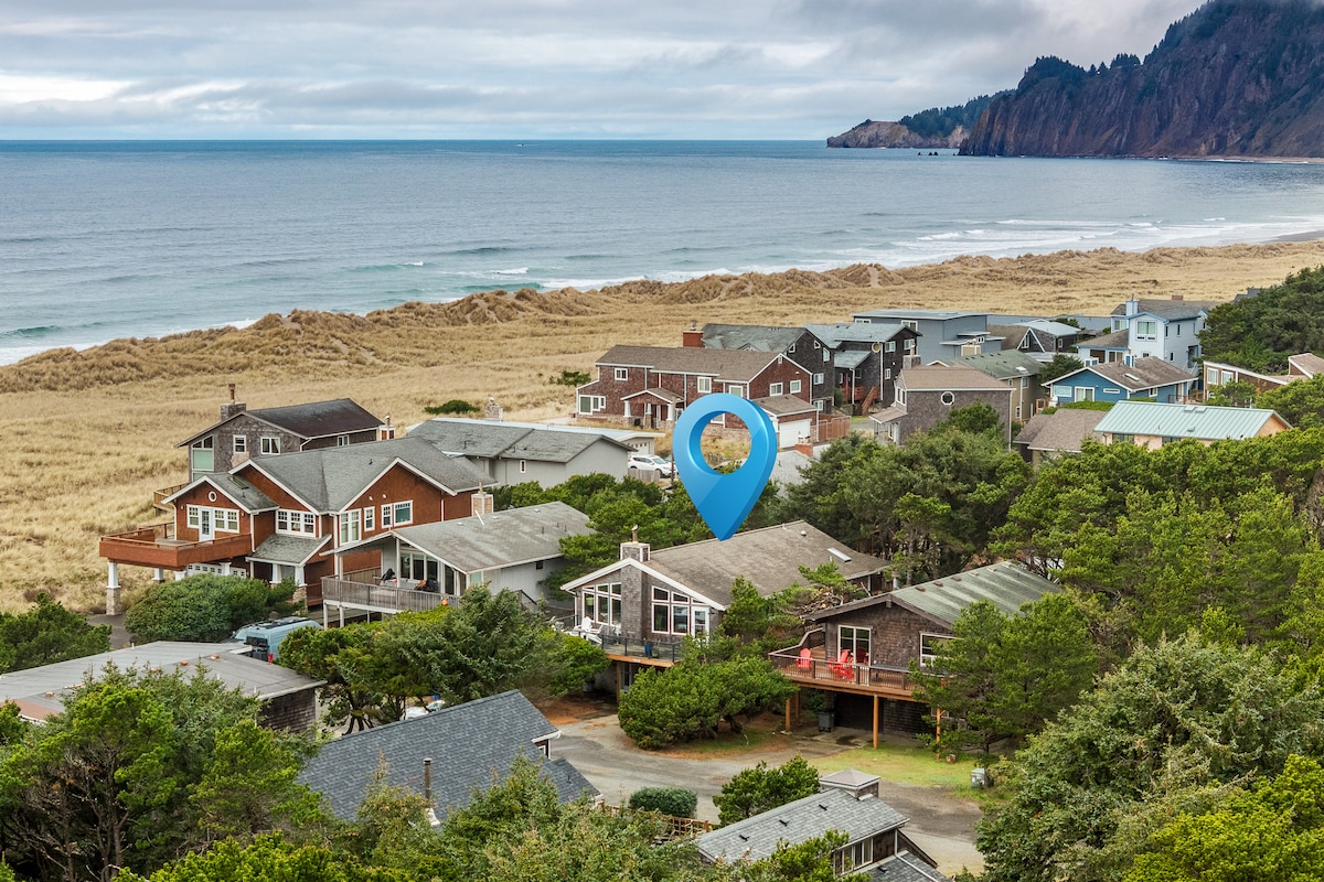 Spacious home, 1/2 block to the beach! Steps from the ocean! Cozy up next to the fireplace and read a book, enjoy the nostalgic charm of watching a VHS tape on the VCR player, play a record on the phonograph, soak in the hot tub, take a bike ride into town, or around Nehalem State Park, stoke up a fire in the wood burning fire pit and look up at the stars, watch the the sunset over the ocean and drink a hot cup of coffee to the sounds of nature, drink a glass of wine next to the fire table etc
