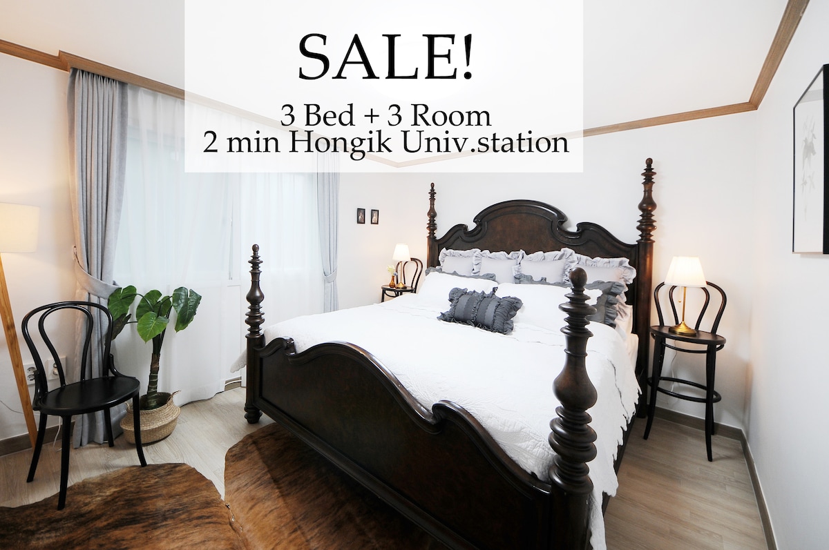 靠近弘大、汉江公园的精致3卧室:弘大街3分钟·上水站5分钟