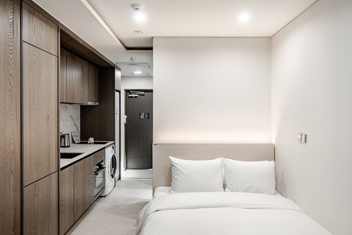 unit is equipped with private bathroom and private mini-kitchen in apartment-style. 원룸 형식으로 된 숙소입니다. 룸 안에 작은 화장실과 작은 싱크대(라면 끓여먹을정도)가 있습니다. 숙박 전용 숙소이기떄문에, 다른 게스트들을 위해 모임과 파티는 불가합니다. 편안한 휴식공간으로 이용하실 분만 예약해 주세요.