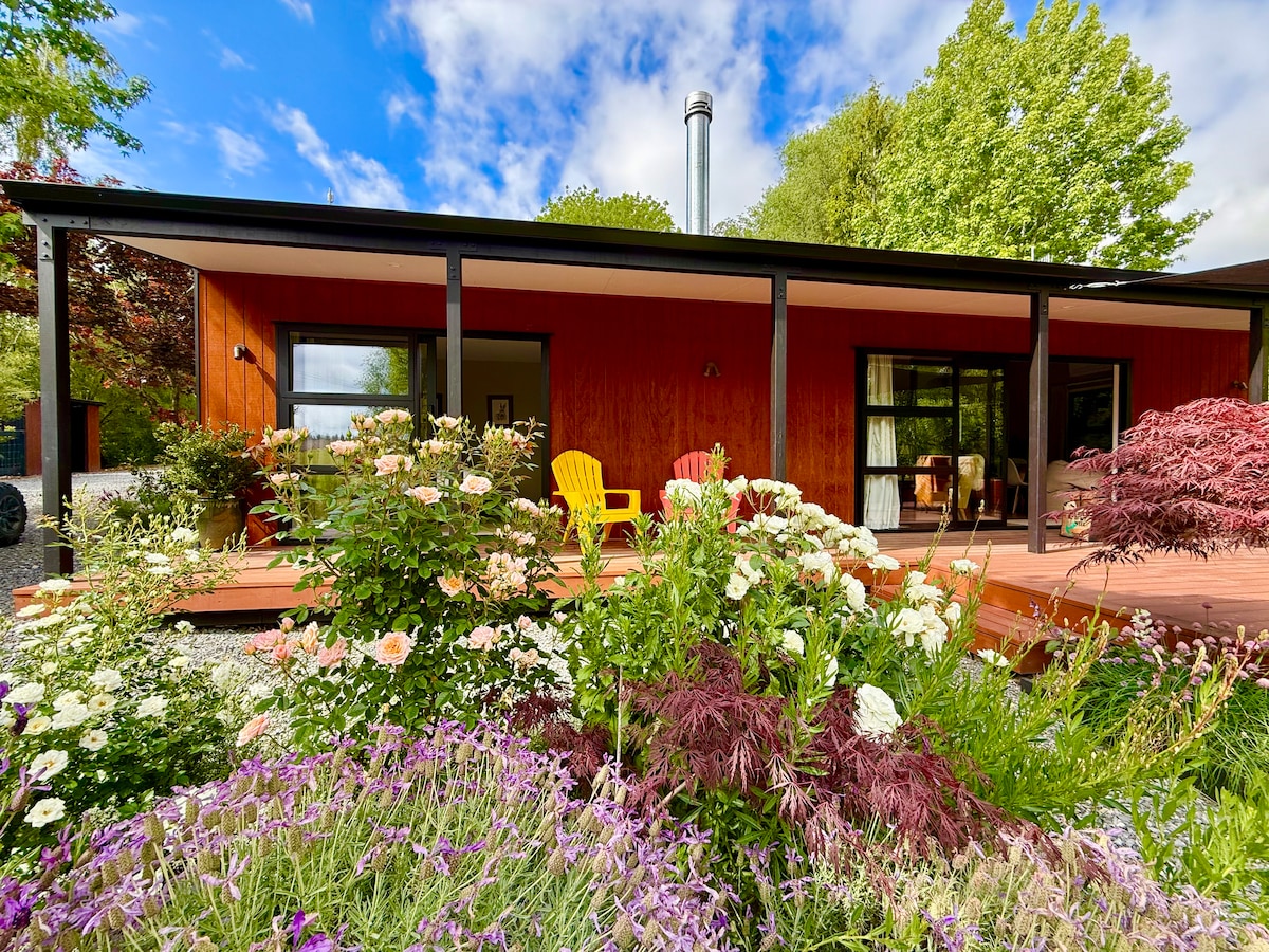 A sunny country cottage and former art studio, is set in our organic garden with abundant bird live and view of the mountains. Lovingly renovated it's fully self contained with a beautiful deck where you can enjoy colourful sunsets and a wonderful country night sky. We are 8 minutes drive away from Motueka and one of the regions most popular cafes and 1 km down the road you can join up with the Great Taste Bike Trail. We are central to the national parks, beaches and many more adventures