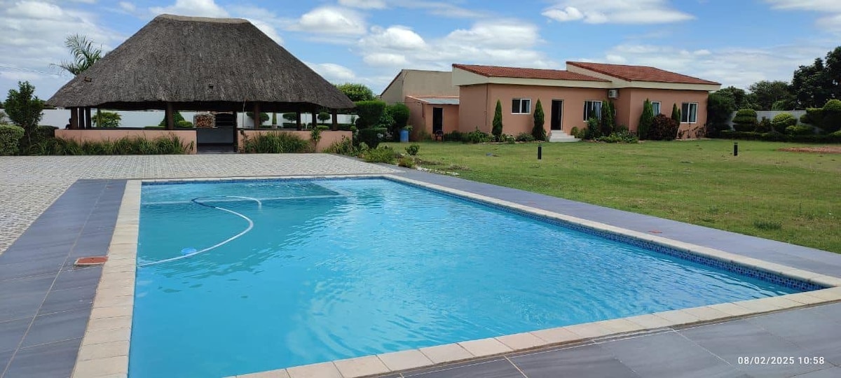 The apartment and its facilities are dedicated to you; nothing shared. Pool, thatch-roofed patio, garden, spacious self-catering kitchen and an outdoor bathroom. Right in the heart of the very secure, serene and mostly expat community neighborhood of Triunfo in Maputo. This facility offers perfect security, ample space, relaxation and peace of mind.