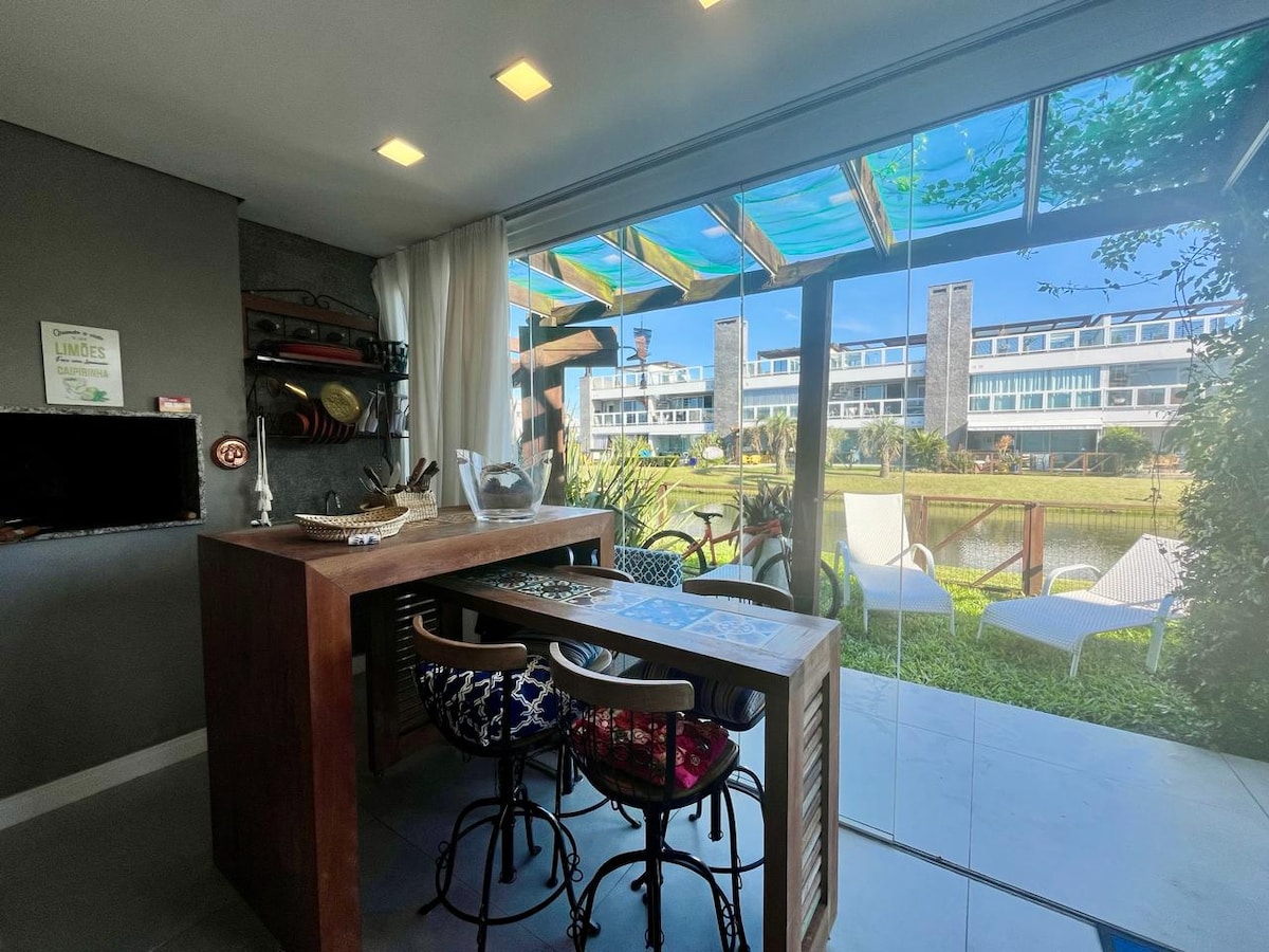 Loft beira lago tudo pronto para aproveitar as férias e relaxar com muito conforto. LAZER DO CONDOMÍNIO: * PISCINA COM BORDA INFINITA; * PISCINA AQUECIDA COM RAIA DE 25M; * BAR PISCINA; * SALOES DE FESTA GOURMET E PUB; * FITNESS; * ESTETICA; * CINEMA; * SAUNA SECA E UMIDA; * QUADRAS DE TENIS DE SAIBRO; * CAMPO DE FUTEBOL; * QUIOSQUE COM CHURRASQUEIRA; * FITNESS EXTERNO E PRACA TEMATICA; * QUADRA POLIESPORTIVA; * PRAINHA E QUADRA DE VOLEI DE PRAIA; * PARADOURO BEIRA MAR.