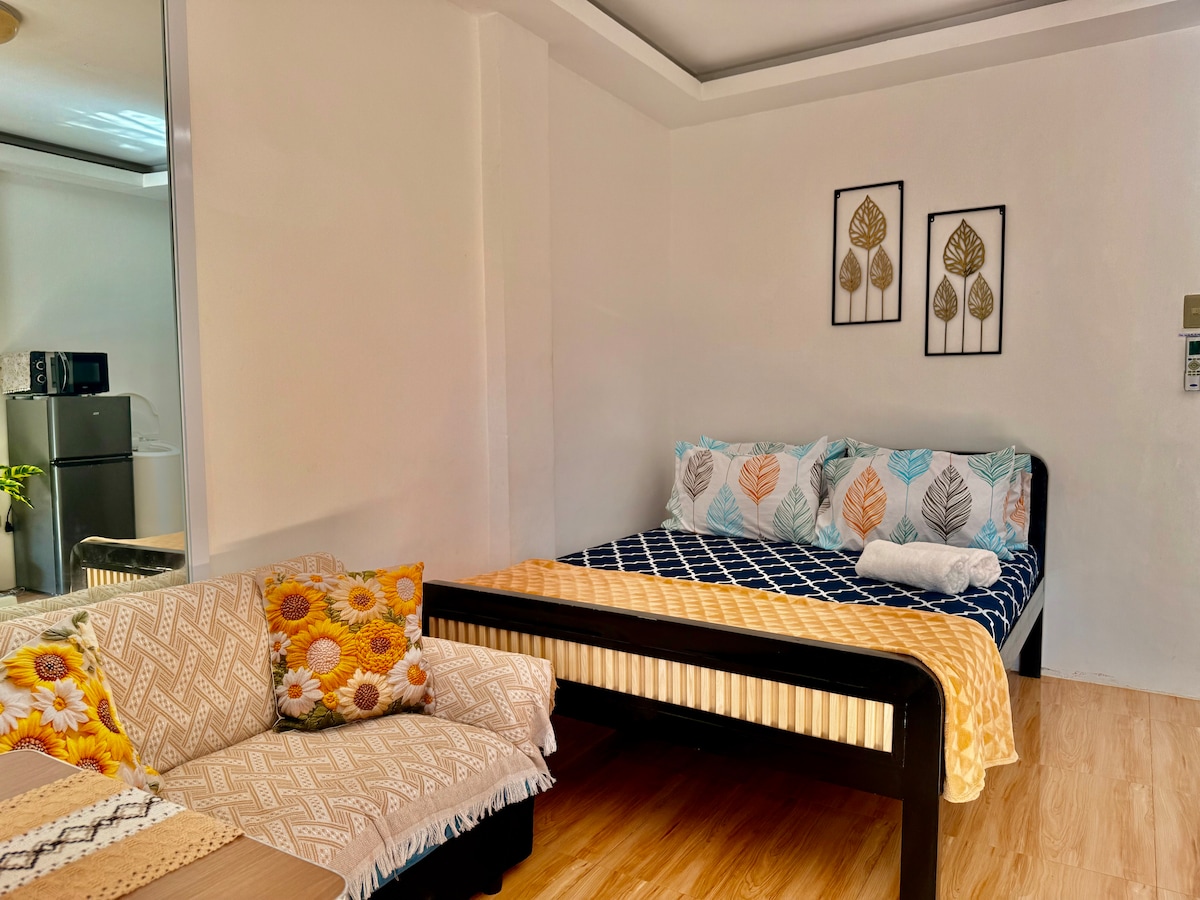 Come home to a spacious and modern, fully furnished studio apartment with your own fully equipped kitchen, balcony, and common garden. We are located in a quiet spot surrounded by greenery 4 km outside busy Coron town, close to the main road and public transport, only 12 minutes via tricycle to town center. We offer PLDT Fiber internet connection, perfect for digital nomads! And automatic power generator, a necessity in Coron where power failures are a regular occurrence.