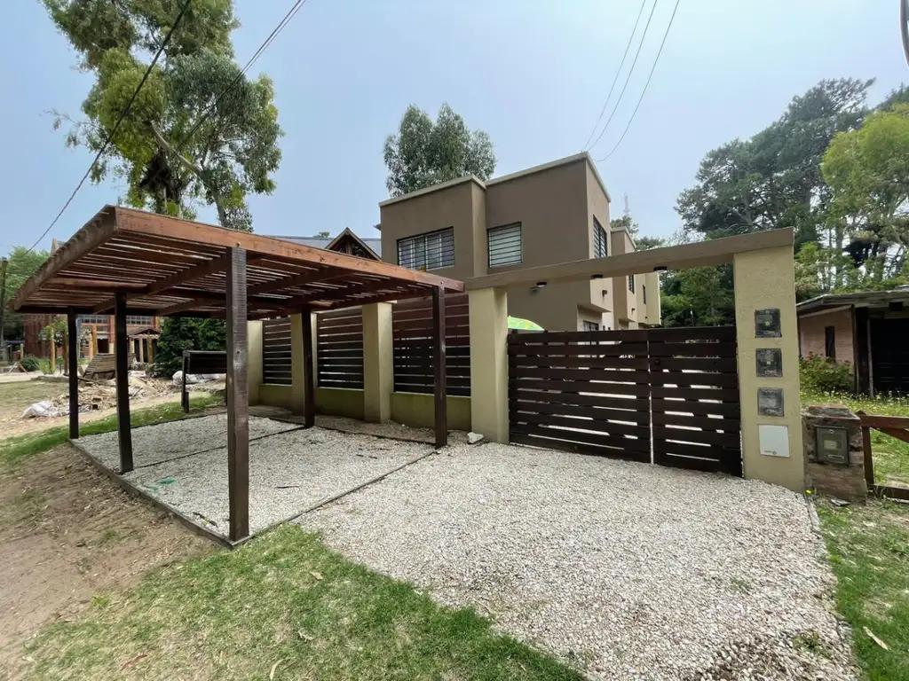 Modern and bright house located in Mar Azul, surrounded by nature and just minutes from the sea. It features spacious interiors, a fully equipped kitchen, a living room with access to the outdoors, and a large wooded park ideal for enjoying the open air. Perfect for families or groups seeking comfort, tranquility, and a connection with the forest.