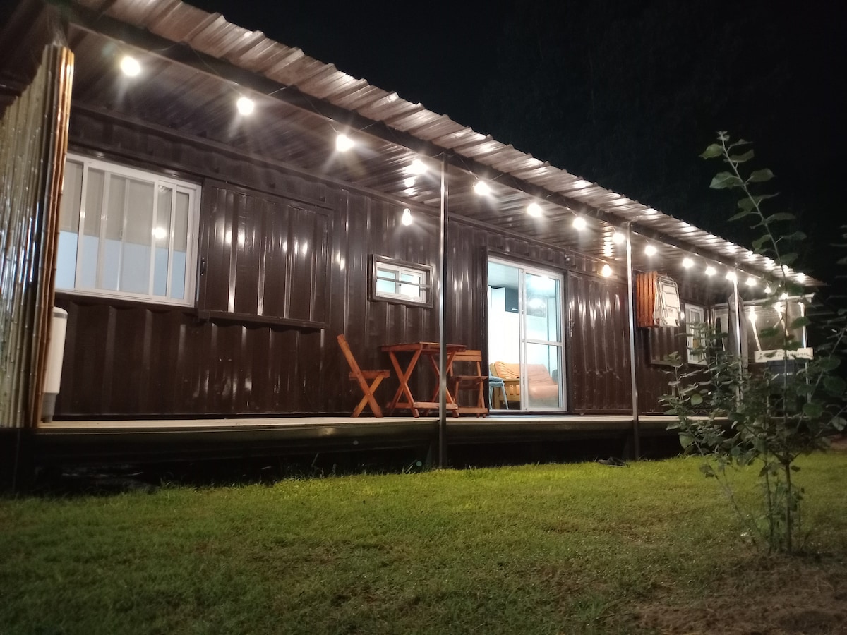 Casa Modular ubicada en un entorno natural de este alojamiento tan romántico. El mismo consta de cocina comedor, living con futon cama, habitación matrimonial, habitación con 2 camas, 1 baño, galería techada con piso deck de 12 metros, con mesas y sillas, Hermoso lugar para para desayunar y demás momentos del dia. También cuenta con patio y acceso vehicular para guardar el vehículo o cuatriciclo dentro de la propiedad. Estacionamiento al frente exclusivo.