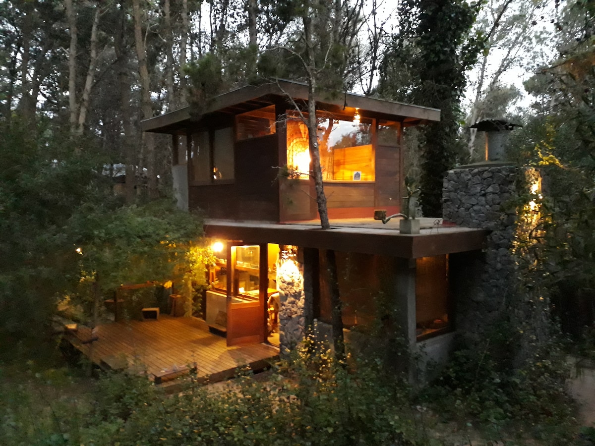 Descansá en nuestra cabaña rodeada de bosque, a solo 300 m del centro y 800 m del mar de Mar de las Pampas. Súper equipada para todo el año: hogar a leña, vitroconvectores y aire acondicionado frío/calor en todos los ambientes. Ideal para venir en pareja, o en familia. Aceptamos mascotas pequeñas. Si te gusta caminar, podés olvidarte del auto: el centro y la playa están a pocos pasos. Consultanos por escapadas de finde o estadías prolongadas. Early check-in/late check-out según disponibilidad.