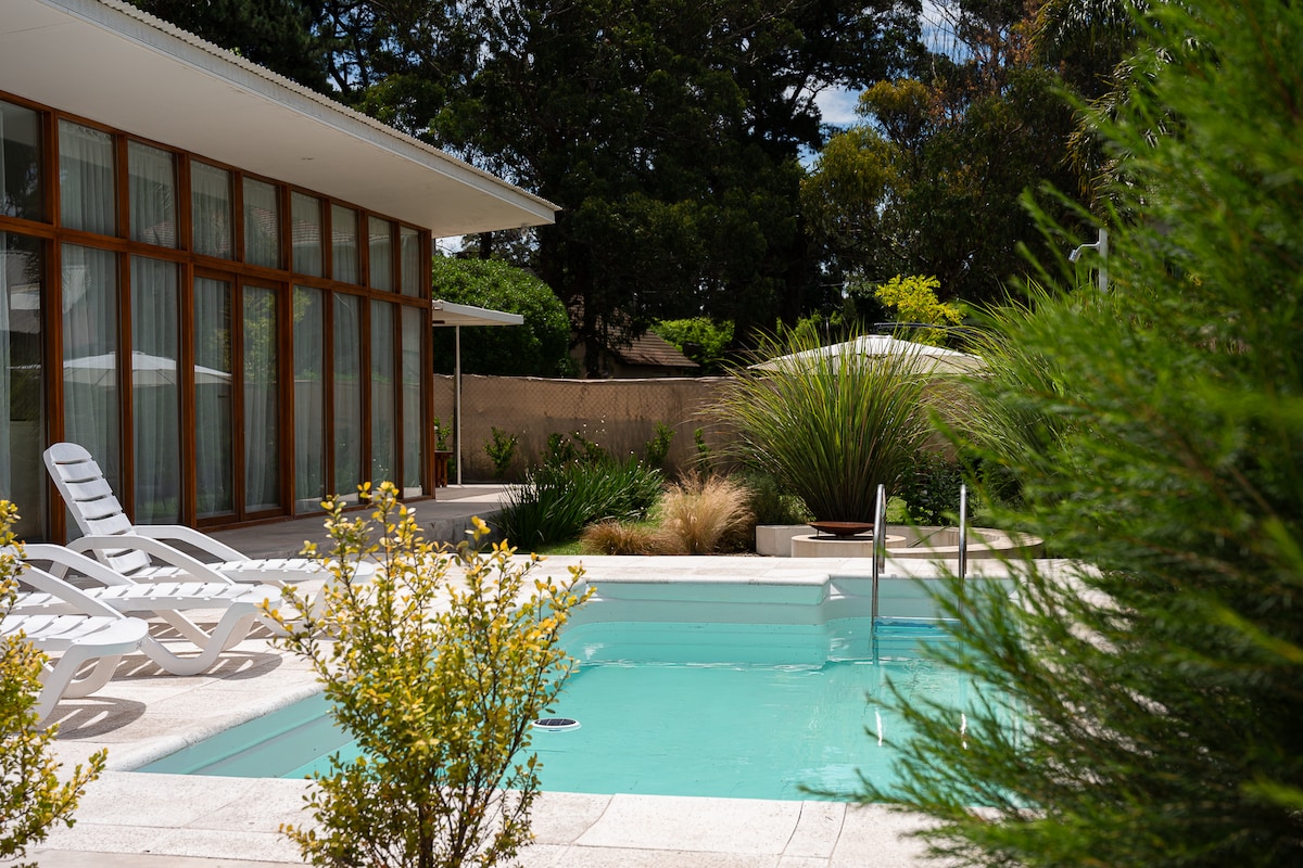 Casa para 4 / 5 personas. Promoción Setiembre a Noviembre 2025: 30% Off noches de Lunes a Jueves Casa de diseño, moderna vivienda de lineas contemporaneas, muy integrada con el calido paisaje del Bosque Peralta Ramos, reserva forestal, que invita al contacto con la naturaleza, situada a 15 cuadras de las playas mas visitadas de Mar del Plata.