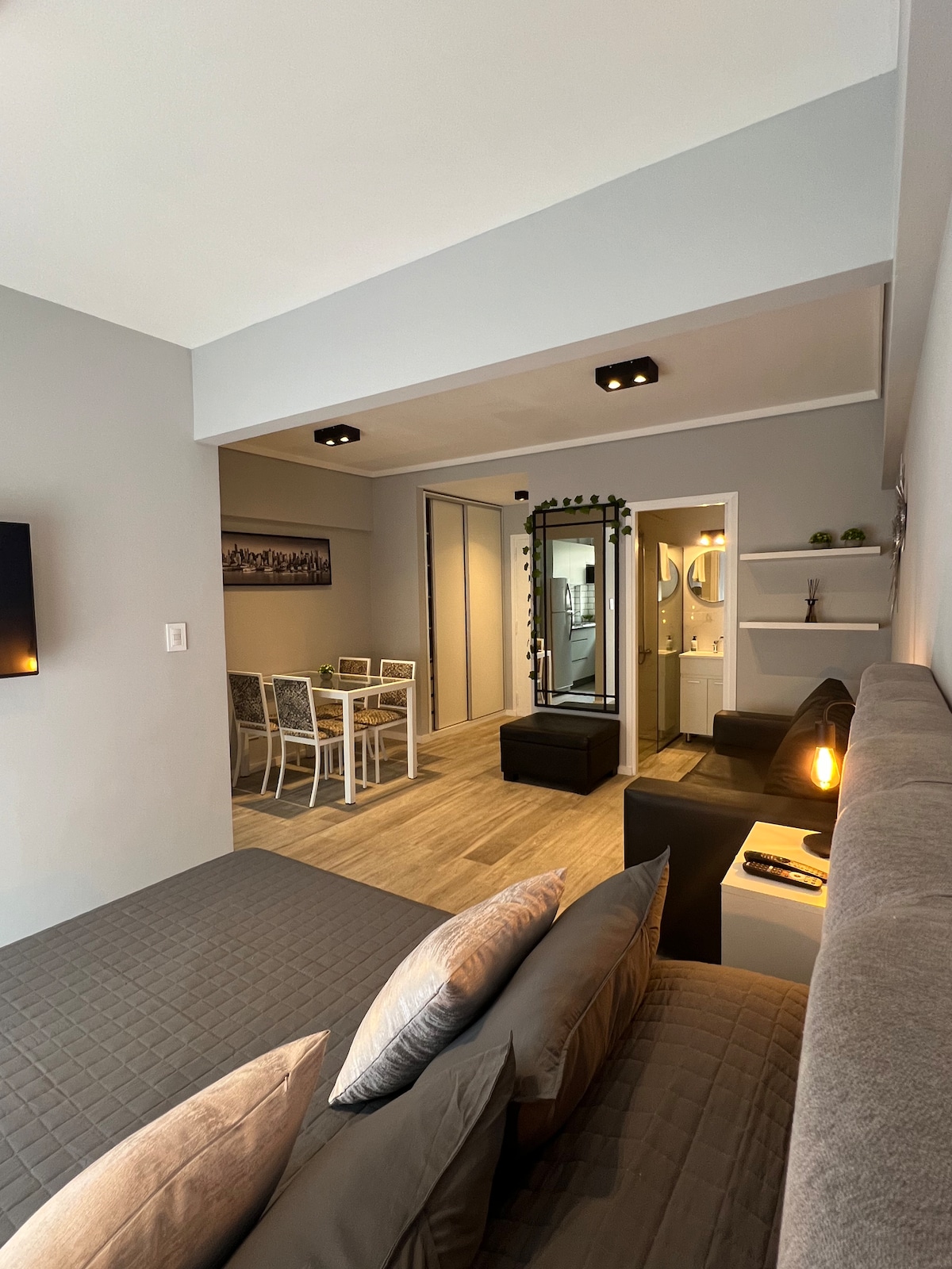 Our charming and well-located accommodation immerses you in the vibrant city life of Mar del Plata. Our modern space is just steps away from Guemes and Olavarria streets, where you can indulge in a wide range of dining options and unparalleled shopping. Only 1 block from Shopping Paseo Aldrey and 4 blocks from the beach. We invite you to experience something truly special in our accommodation, surrounded by the best that Mar del Plata has to offer!