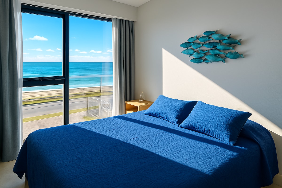 Departamento de 3 ambientes amplios, con vista al mar sobre Bahía Varese. Cuenta con dos habitaciones en suite y un toilette. Completamente equipado con mobiliario de alta calidad y electrodomésticos. Smart Tv y aire acondicionado frío/calor en todos los ambientes. El edificio cuenta con piscina cubierta y exterior climatizada y gimnasio. Las cocheras son Muy chicas, consultar antes de reservar
