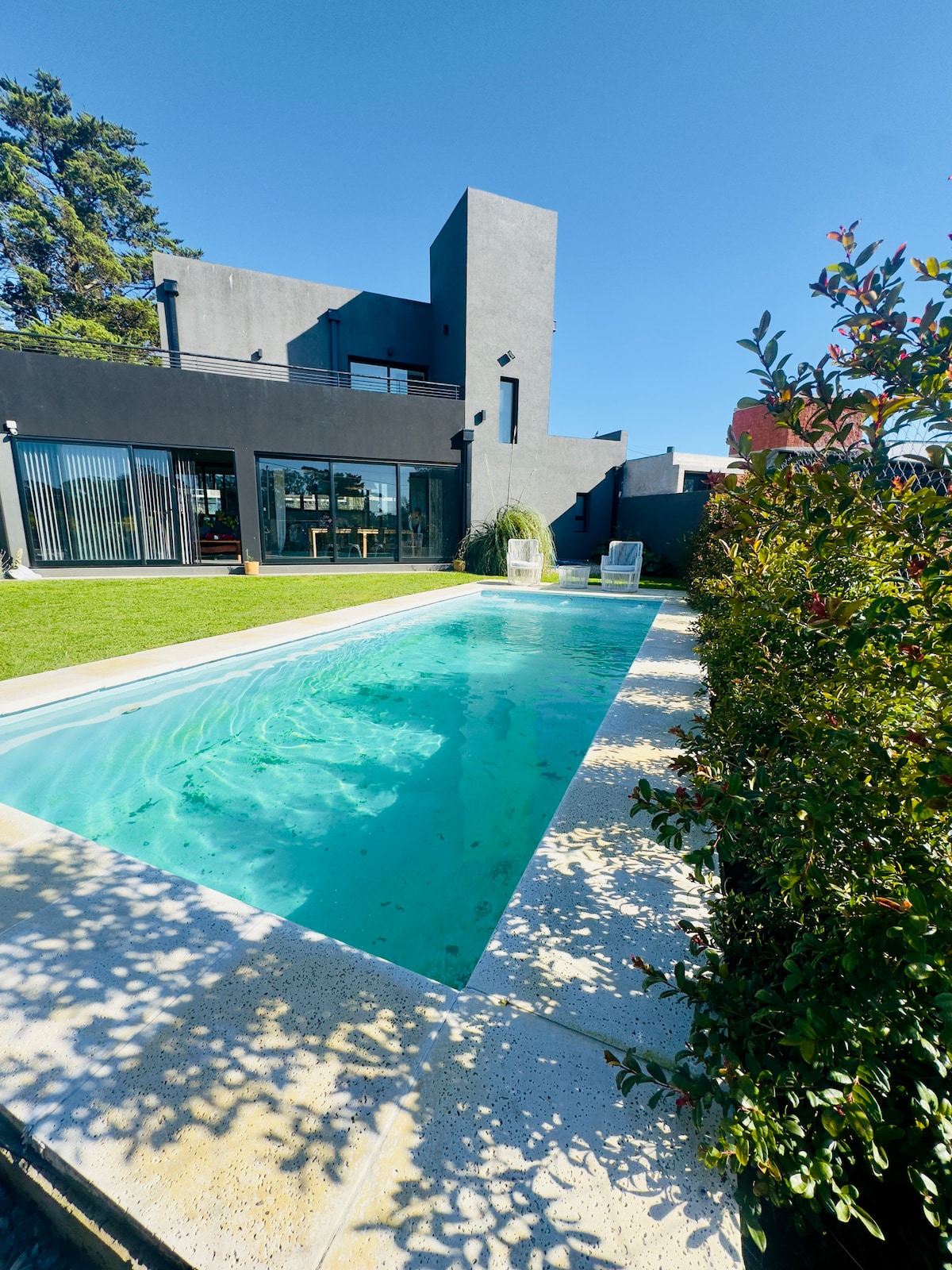 En Bosque Peralta Ramos, moderna, espaciosa, práctica y luminosa. Dentro de una propiedad de 2000 m2. Comparte espacio con otras dos casas, y en una de ellas vivo yo con mis 3 perros. Las casas tienen privacidad y un parque enorme. Tiene quincho con parrilla y fogón también compartido. Está a 10 minutos de las playas de sur. El entorno es mágico. Tengo hermosas experiencias y comentarios de quienes nos visitaron.