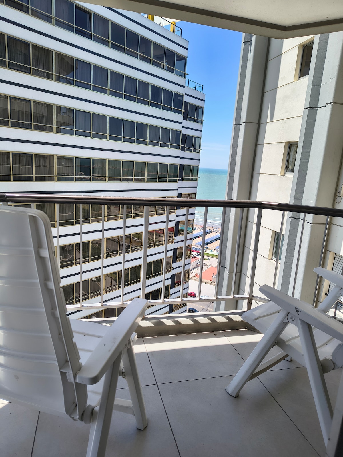 Departamento espacioso de ambiente y medio con cocina equipada y baño privado. Ubicado a dos cuadras del mar y en el centro de la ciudad. Muy luminoso y agradable, tiene vista abierta y al mar. El edificio es nuevo, cuenta con pileta semi-olímpica( no climatizada), gimnasio, sala de juegos y lavandería. Se puede conseguir estacionamiento dentro del edificio, con previa anticipación con costo adicional. Se abona al momento del check in.