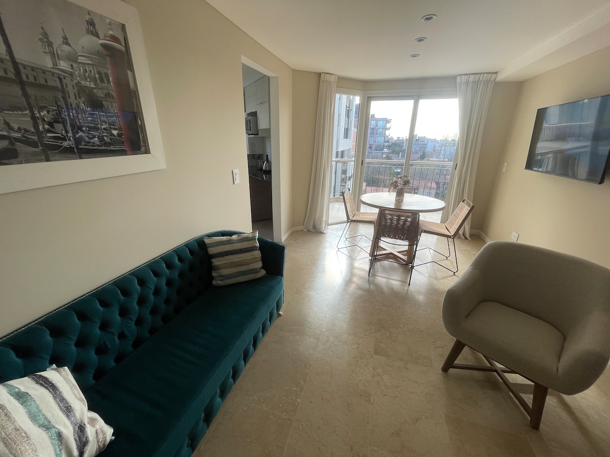 Playa Grande. Departamento de categoría. 85 mts, super luminoso y buena vista. Dormitorio en suite con baño completo Toilette de recepción con ducha Cocina integrada y desayunador Living/comedor Amplio balcón con salida del dormitorio y living Totalmente equipado y amoblado Aire acondic/calefacción piso radiante Cochera fija cubierta amplia Seguridad 24 horas Edificio con amenities: sum, pileta y gimnasio. Televisor 50 " K, con Flow. WF 300 Mega No se aceptan mascotas No se aceptan grupos