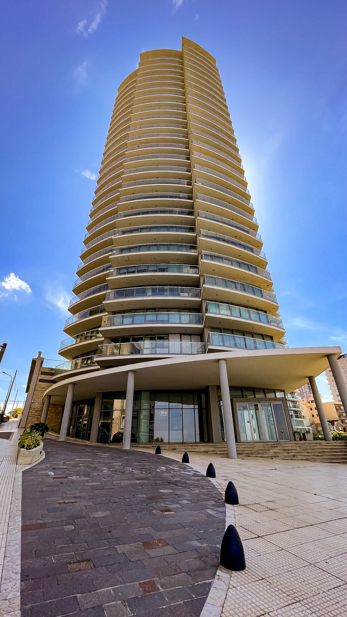 Departamento exclusivo en Torre, Frente al mar en el complejo residencial Maral Explanada, obra del arq. Cesar Pelli. 3 Torres de planos curvos con balcones aterrazados en voladizo, emplazados en una manzana entera, en una atmósfera moderna y minimalista. Lugar Unico. sobre la av. Peralta Ramos, Playa chica, zona emblemática de la ciudad. Departamento de 83 metros cuadrados, con Dormitorio en suite con baño completo c/hidromasaje, toilette, cocina integrada con barra, cochera fija y amenities