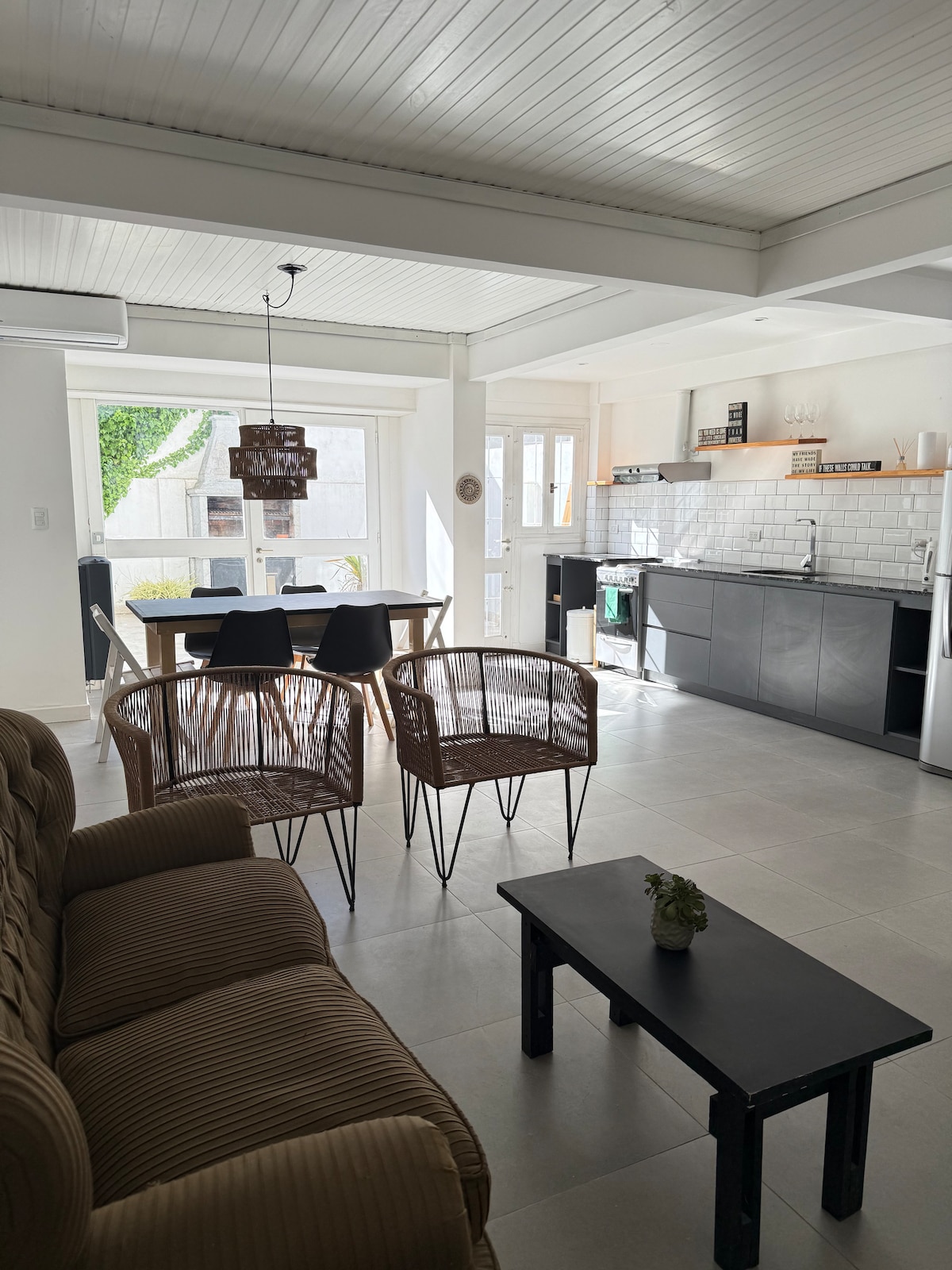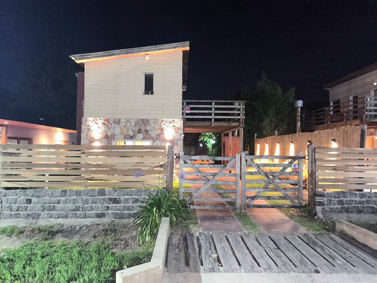 Casa 2 ambientes nueva. Entrada independiente. Garage semi cubierto para un auto. Emplazada en lote de 450 metros cuadrados, parque y árboles. 1 Dormitorio con cama doble y placard nórdico. Cuarto de Baño completo. Cocina totalmente equipada, heladera con freezer, pava eléctrica y microondas. Living, comedor integrados, super luminoso. Ultimas tendencias en Deco. Smart TV / Wi Fi / Alarma inalambrica. Terraza con parrilla y accesorios en espacio semicubierto.