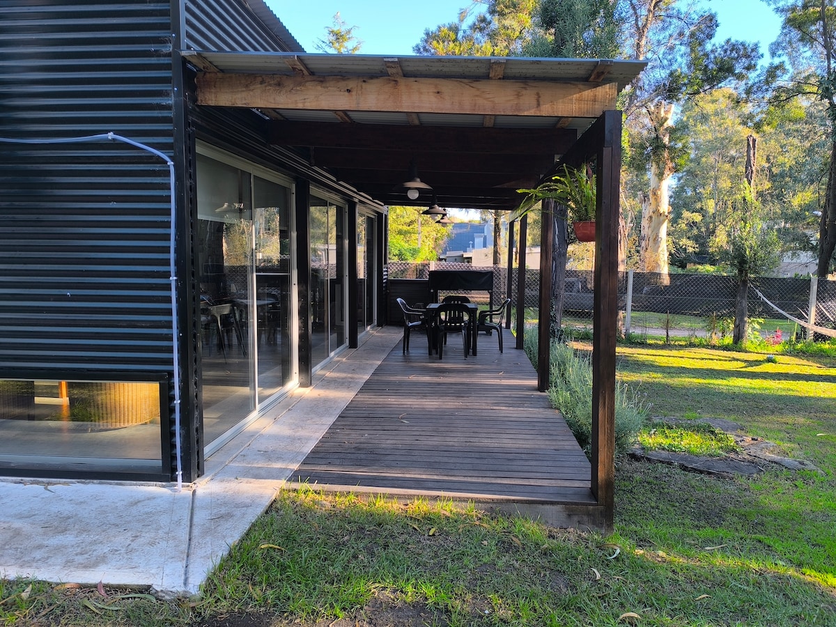EL DISFRUTE - Cozy and very illuminated house at Bosque Peralta Ramos. Two large, open sunny areas: At the entrance, and another one more private, with a grill, deck chairs and garden table. 65mt2. house, prepared for our guests to have a wonderful holiday. It has a big room with areas divided : living-room, dining-room and the dorm area. The kitchen is well-equiped with another grill inside. It is a PET FRIENDLY space. We look forward to your visit! Special prices for longer periods.