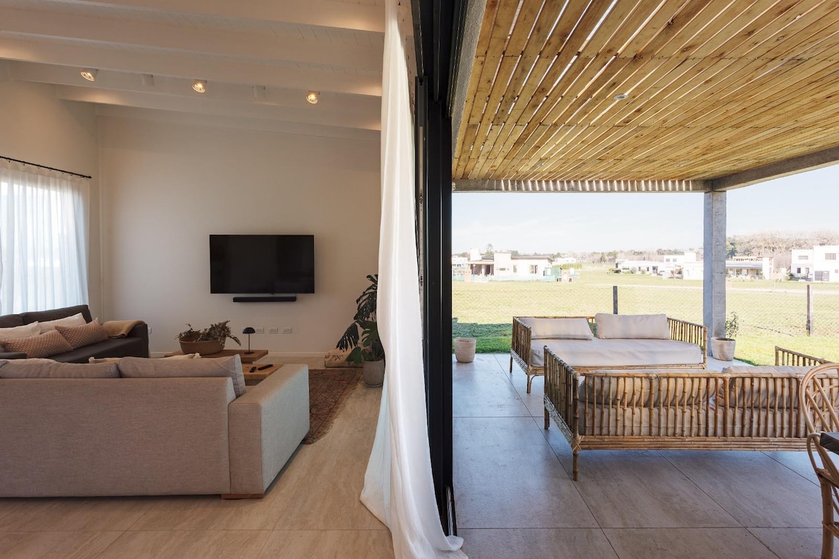 Casa para 4 / 5 personas. Promoción Setiembre a Noviembre 2025: 30% Off noches de Lunes a Jueves Casa de diseño, moderna vivienda de lineas contemporaneas, muy integrada con el calido paisaje del Bosque Peralta Ramos, reserva forestal, que invita al contacto con la naturaleza, situada a 15 cuadras de las playas mas visitadas de Mar del Plata.