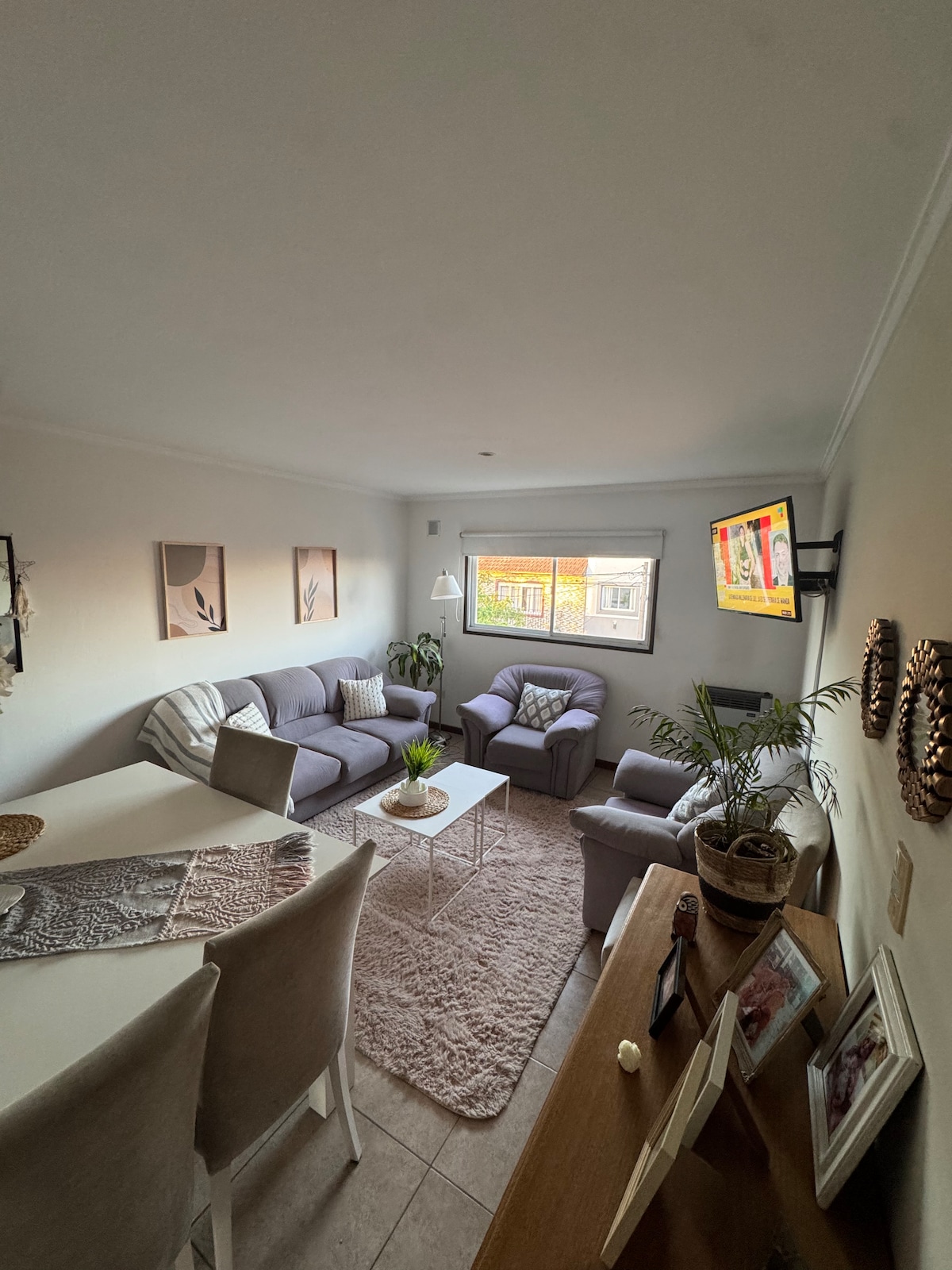 Es un departamento pequeño,de 2 amb,con vista al contrafrente. Con equipamiento sencillo y básico como si fuera el hogar de un estudiante universitario. IDEAL PARA PAREJAS, GRUPO FAMILIAR, PEQUEÑO: 2 adultos y 1 niño, O VIAJERO SOLITARIO. El baño y la cocina están en su estado original. La heladera y utensilios tienen sus buenos años, pero funcionan correctamente. Posee termo eléctrico, AACC frío/calor, cocina y horno a gas Tiene Wifi TV led con Google tv Tiene heladera. No posee freezer