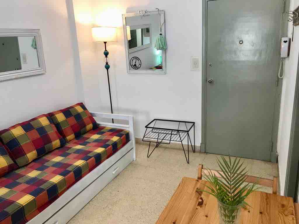 Departamento espacioso de ambiente y medio con cocina equipada y baño privado. Ubicado a dos cuadras del mar y en el centro de la ciudad. Muy luminoso y agradable, tiene vista abierta y al mar. El edificio es nuevo, cuenta con pileta semi-olímpica( no climatizada), gimnasio, sala de juegos y lavandería. Se puede conseguir estacionamiento dentro del edificio, con previa anticipación con costo adicional. Se abona al momento del check in.
